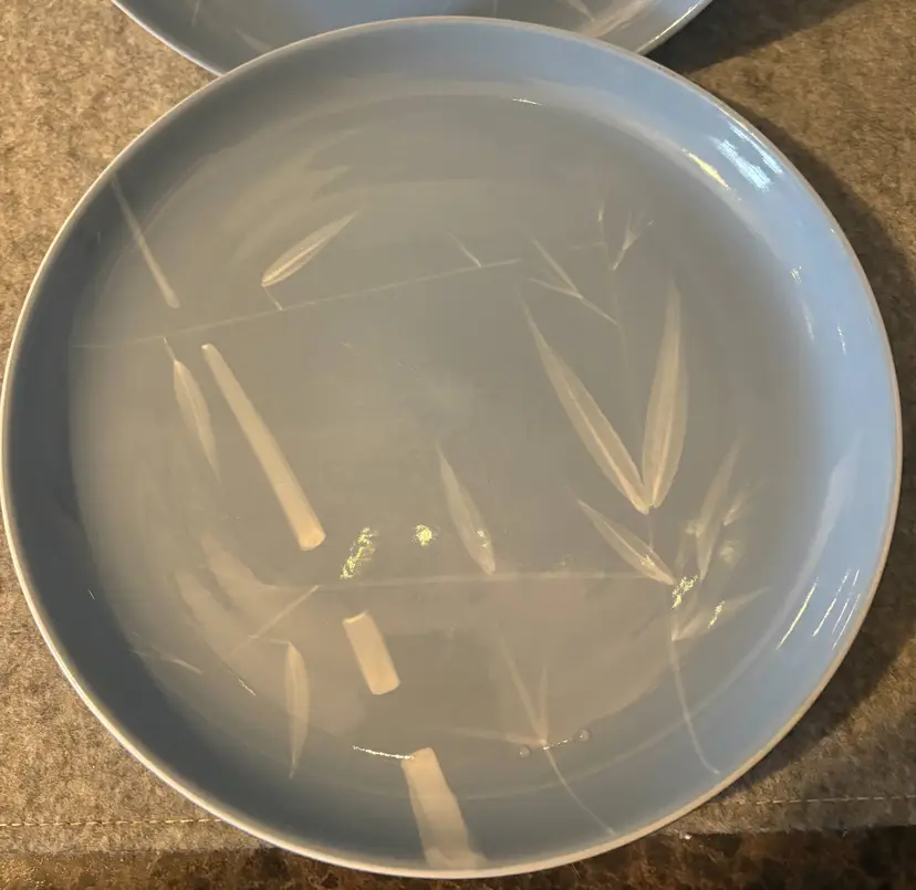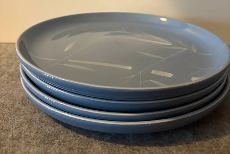 4 Very Nice Plates with Beautiful Bamboo Design, Slight Use