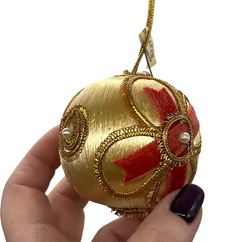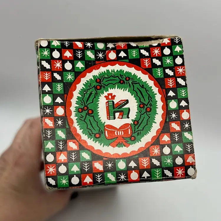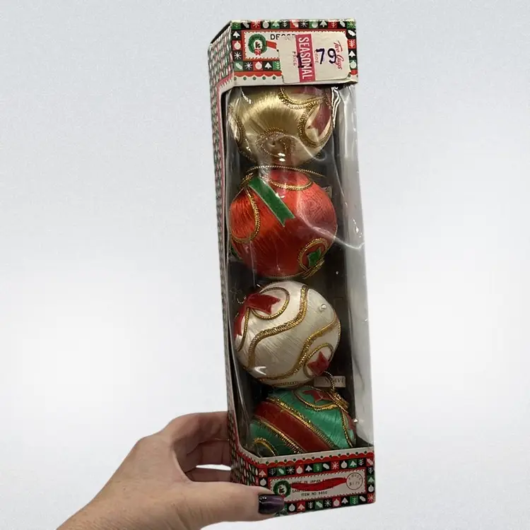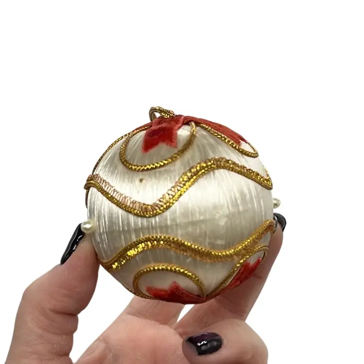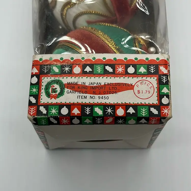 Good vintage condition! Box shows wear. Ornaments show a few marks and missing a few pearls. Approx: 2.5”