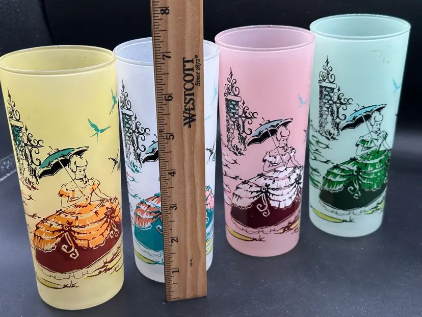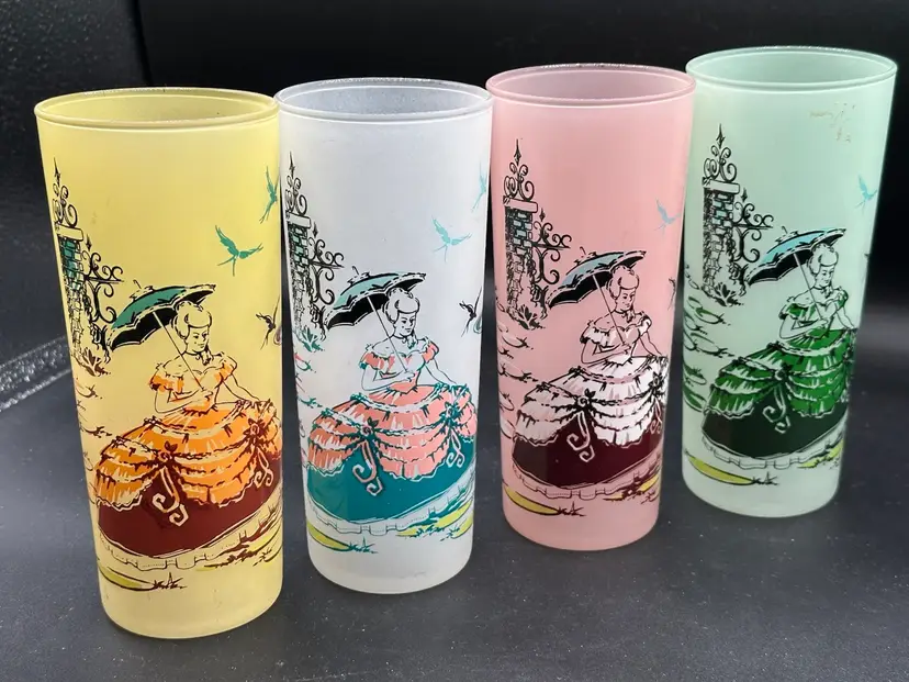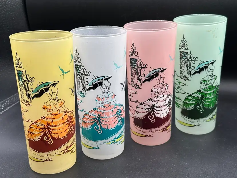 4 Vtg Libbey Southern Belle Pastel Frosted Tumblers Tom Collins Drink Glasses