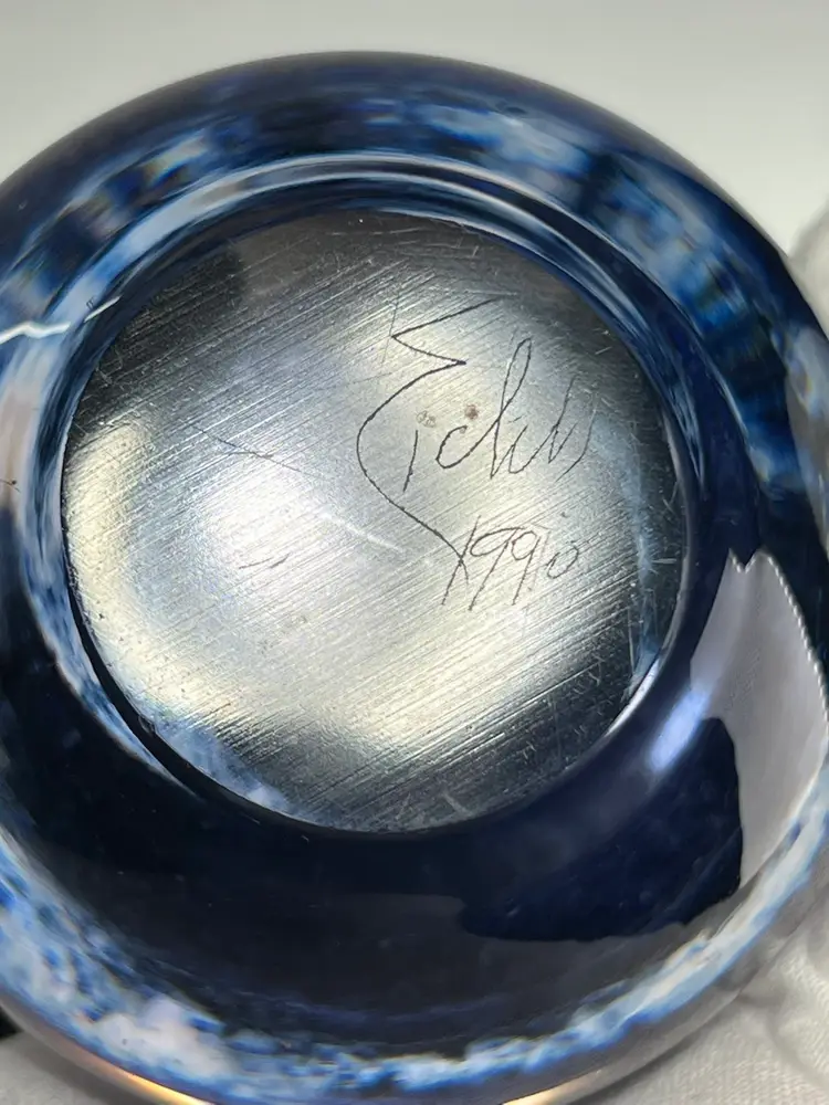 a cool large bubble eye looking paperweight signed Eickholt 1990. about 4" across