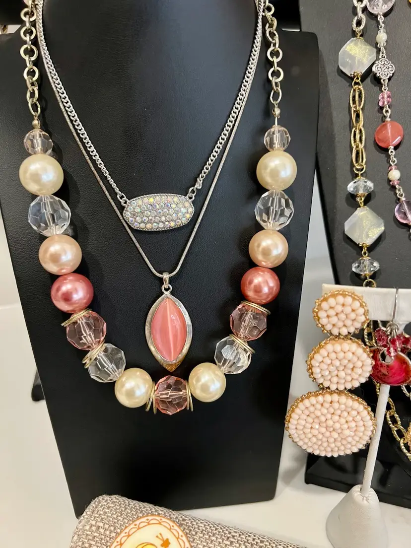 Vintage & Mod Jewelry Pink Beads Bling Mixed Lot Estate Wear Resale #ML-11