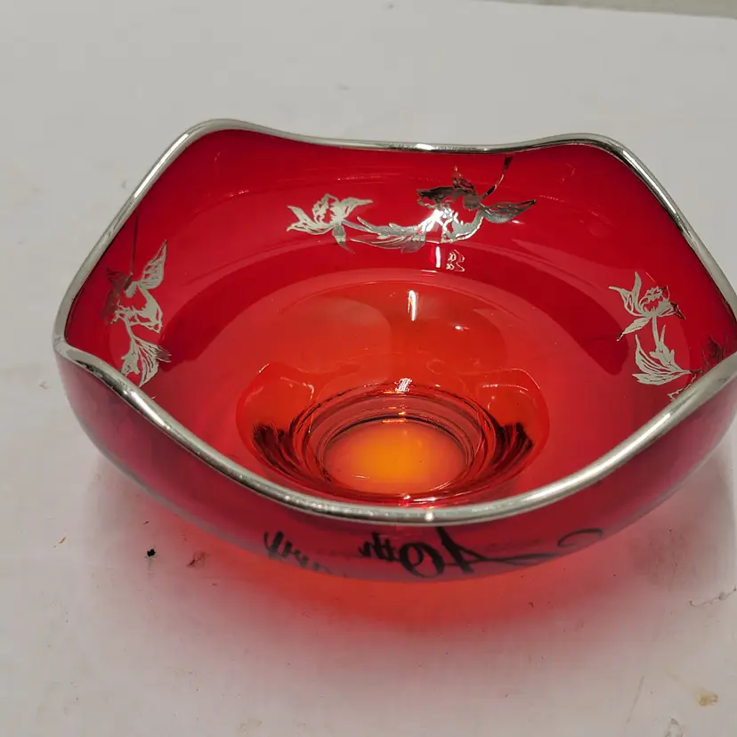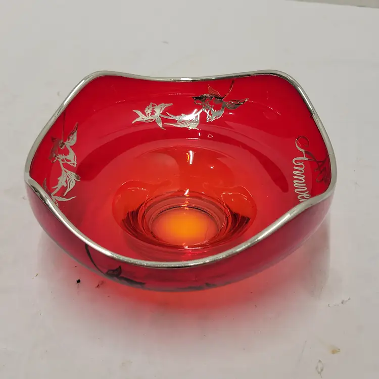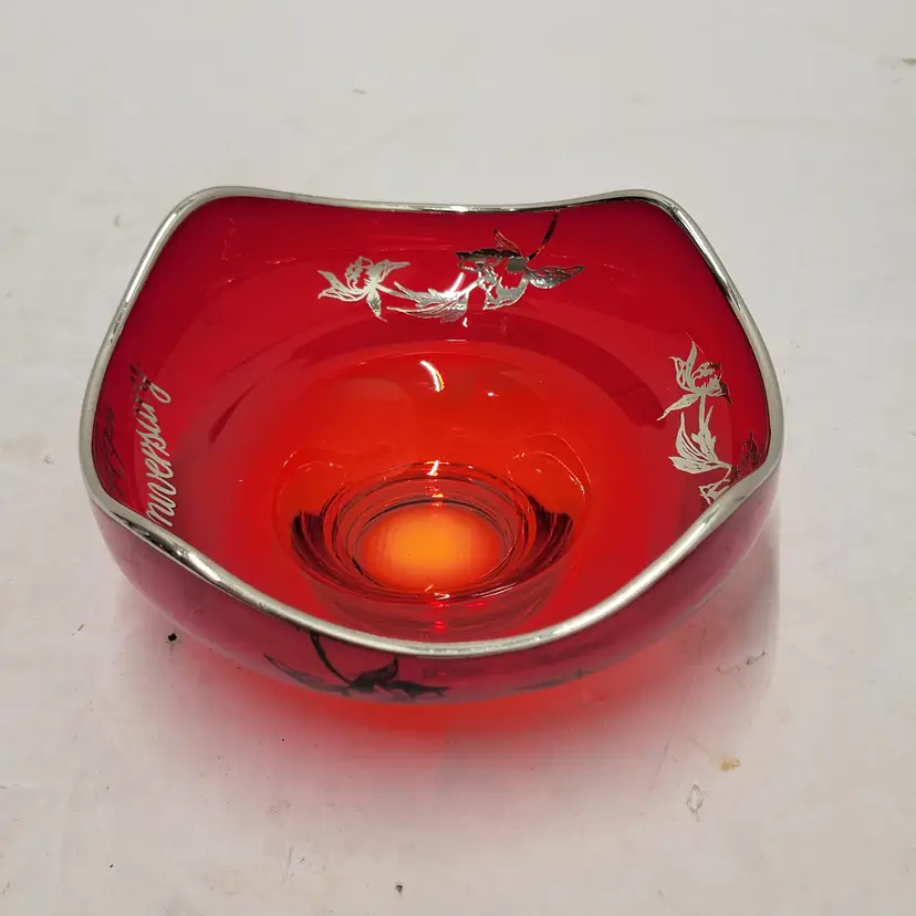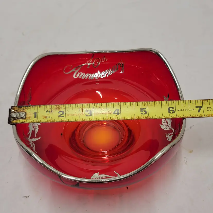 40th Anniversary Klein's Ruby Red Art Glass W/ Silver Accent