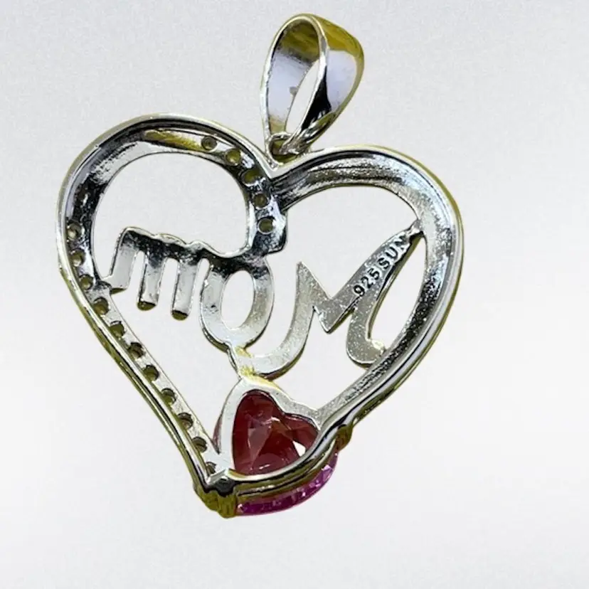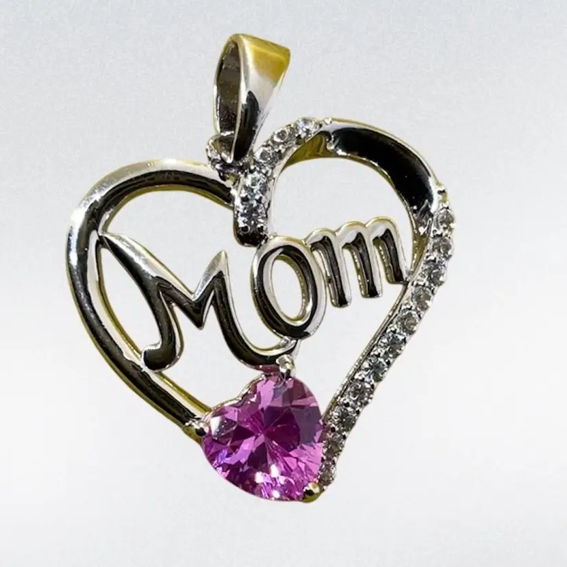 #41 .925 Pink / White Sapphire Mom Pendant 1”