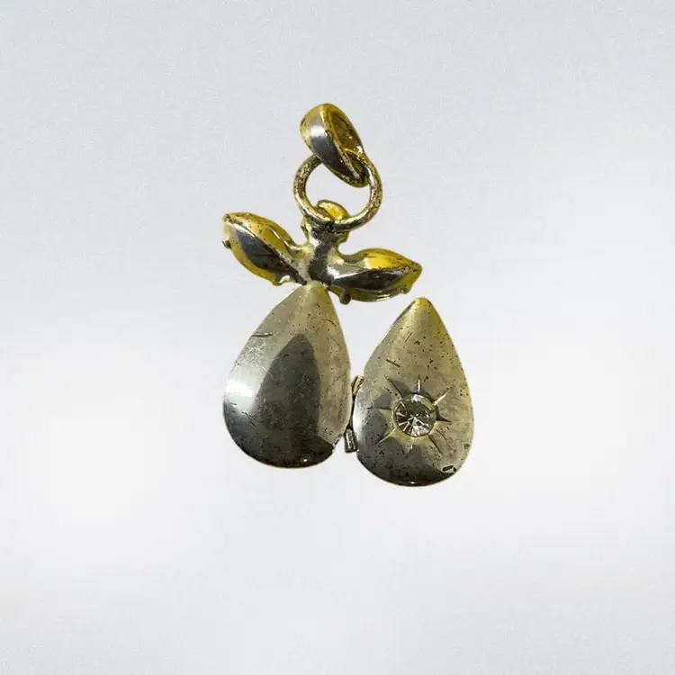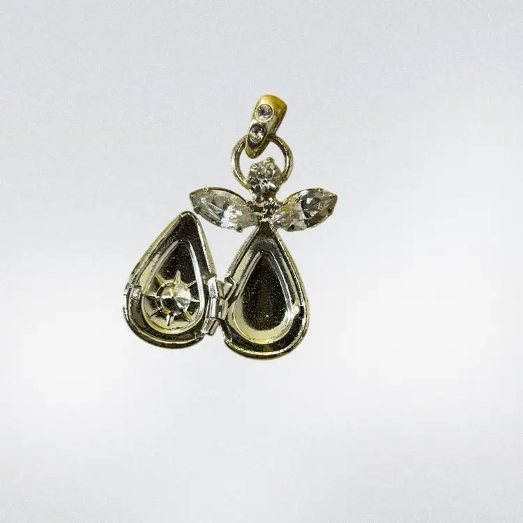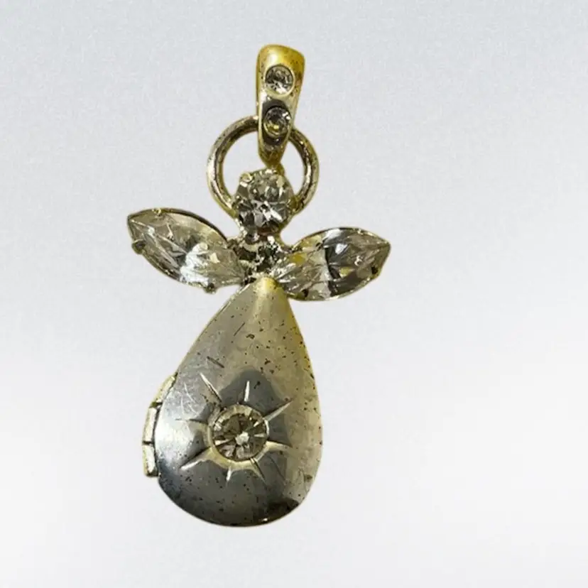 #41 Costume Silver Tone / Rhinestone Angel Pendant Locket 1โ€
