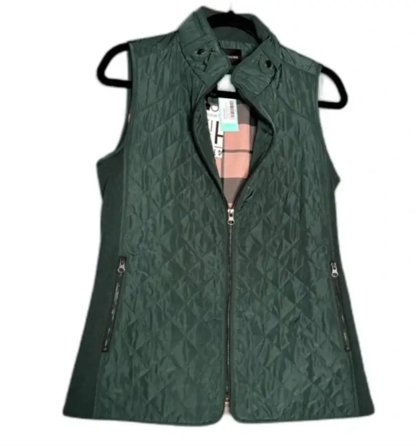 41 Hawthorn NWT Dulcie Quilted Zip Up Green Vest small quilted puff vest, zip up with 2 side pockets