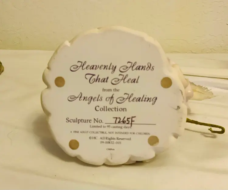 I’m good condition. No chips or cracks. Heavenly Hands That Heal from the Angels of Healing Collection Sculpture No._7265F Limited to 95 casting days. A FINE ADULT COLLECTIBLE, NOT INTENDED FOR CHILDREN © HC. All Rights Reserved. 09-00832-001
