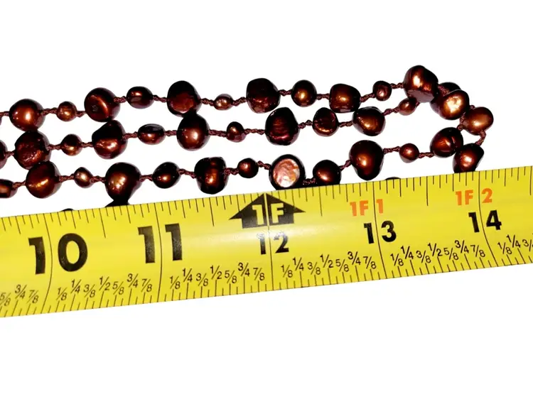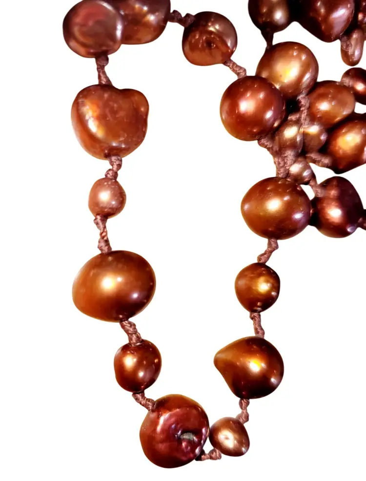 • 42 inches in length • Hand-knotted design for durability • Irregular baroque pearls with unique shapes • Chocolate brown color adds vintage charm • Versatile for layering or standalone use