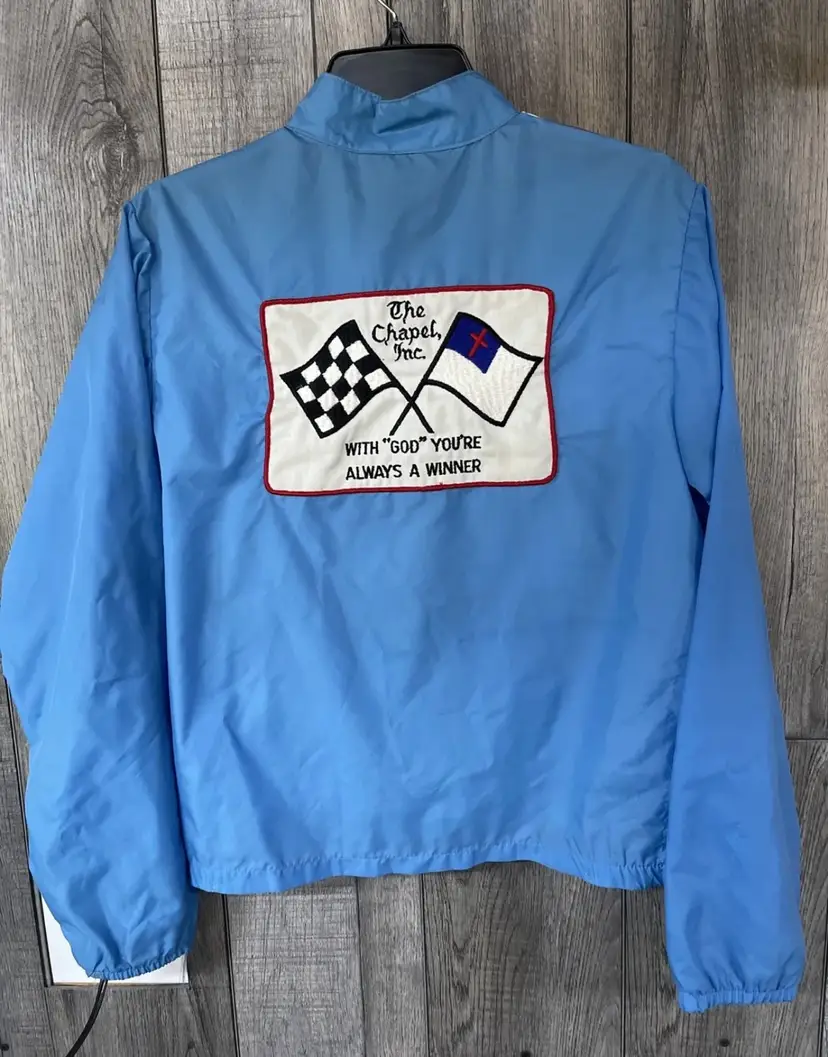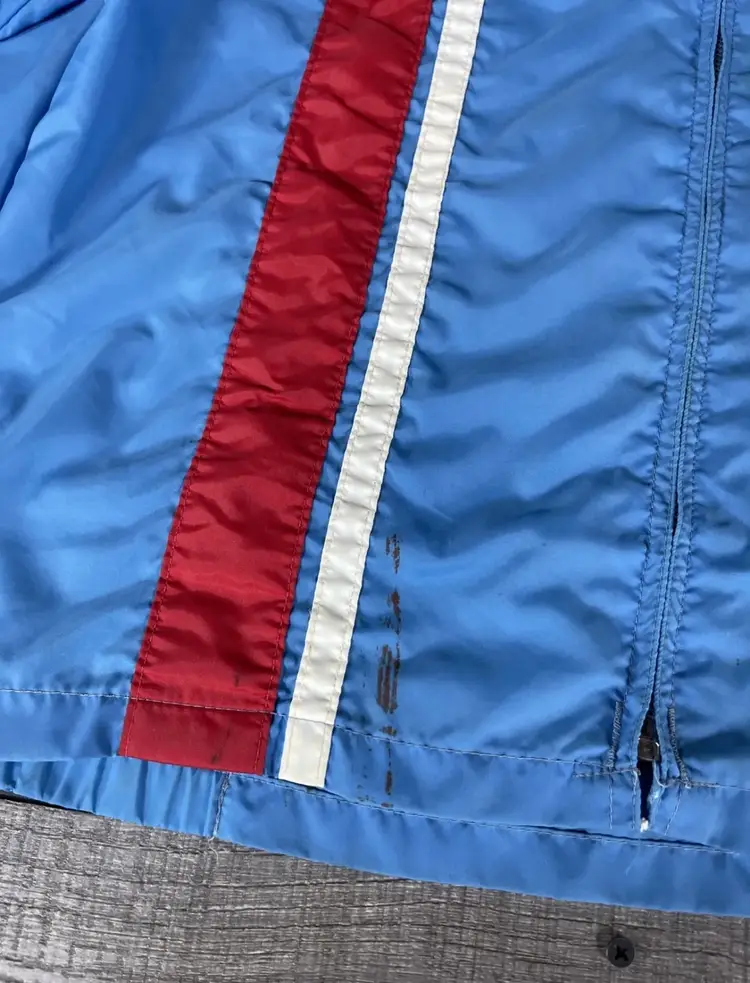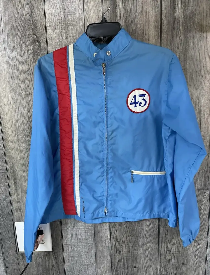 This vintage STP Richard Petty patches windbreaker jacket is a rare find for any racing fan. The jacket features a classic fit, full zip closure, and zipped pockets. Made of nylon, it's lightweight and packable, perfect for all seasons. The red, white, and blue color scheme and gas and oil theme make it a unique addition to any wardrobe. This mid-length jacket is a size L 16-18 and was manufactured in the 1970s. It's in excellent condition and would make a great addition to any collection. Whether you're a fan of vintage clothing or racing memorabilia, this jacket is a must-have. -Pit to pit- 21” length 23” -Zipper works freely. -What you see is what you receive, please see photos. -Does have a stain on the front lower right- see pictures. -Item is sold as is. -Free shipping with USPS mail.