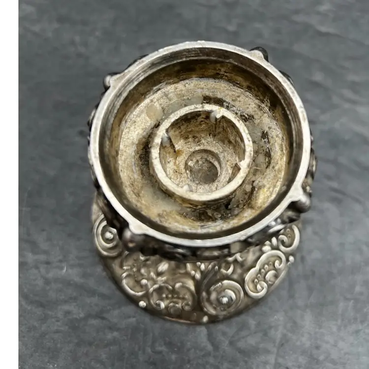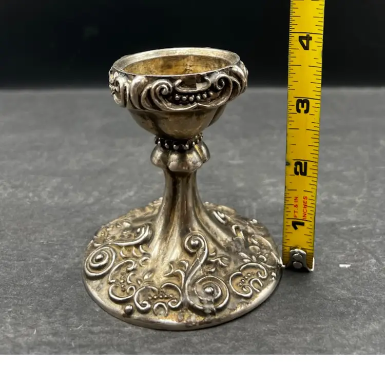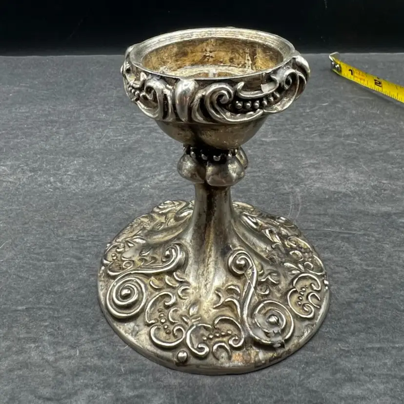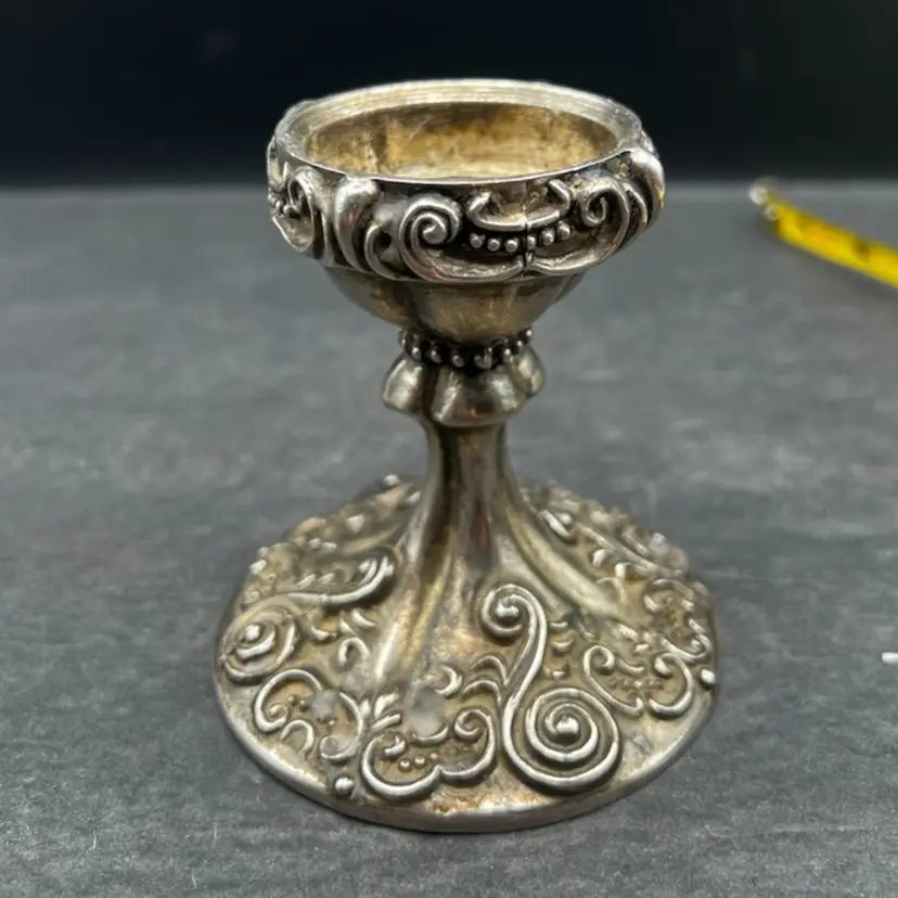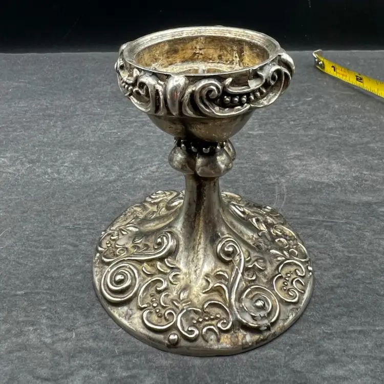 Vintage Godinger Silver-plate Candlestick Holder Featuring a Baroque/Swirl Baroque Design In excellent condition A little over 3 1/2” tall x 3” at base Nice weighted piece Would make a great paperweight stand/display