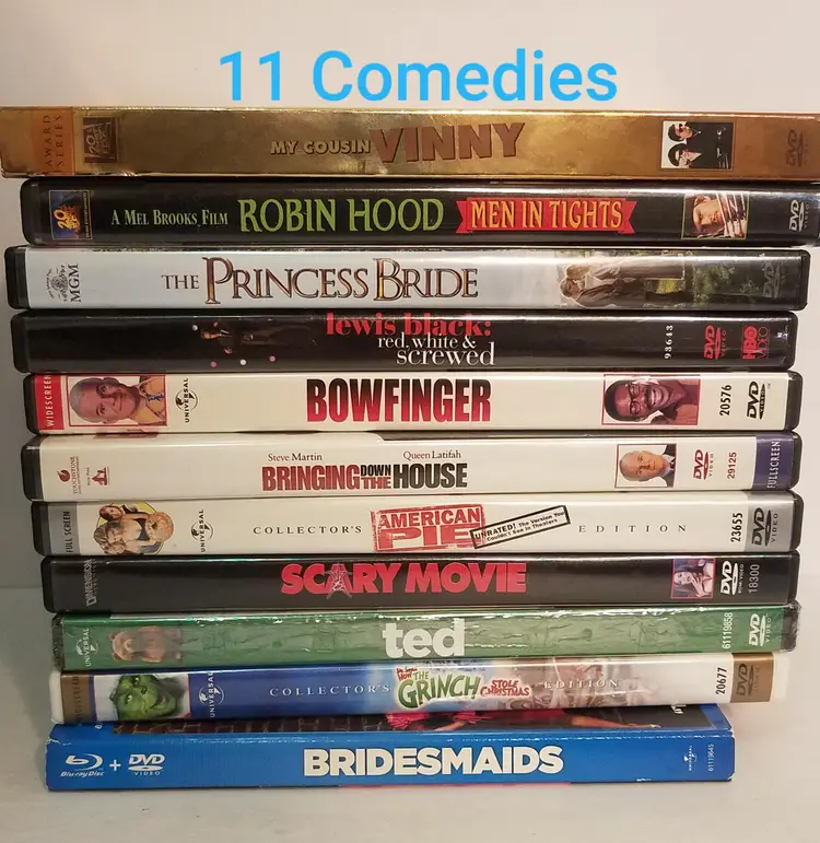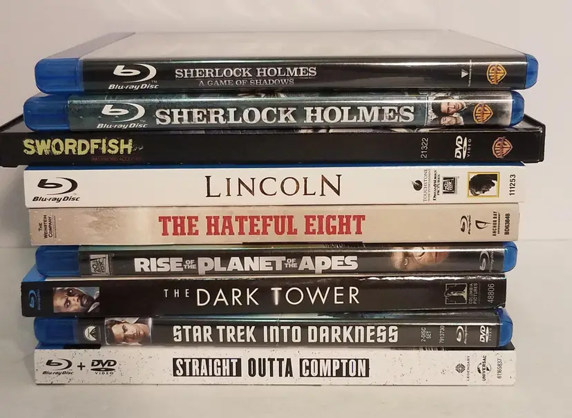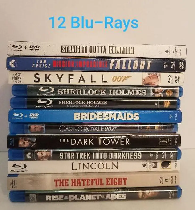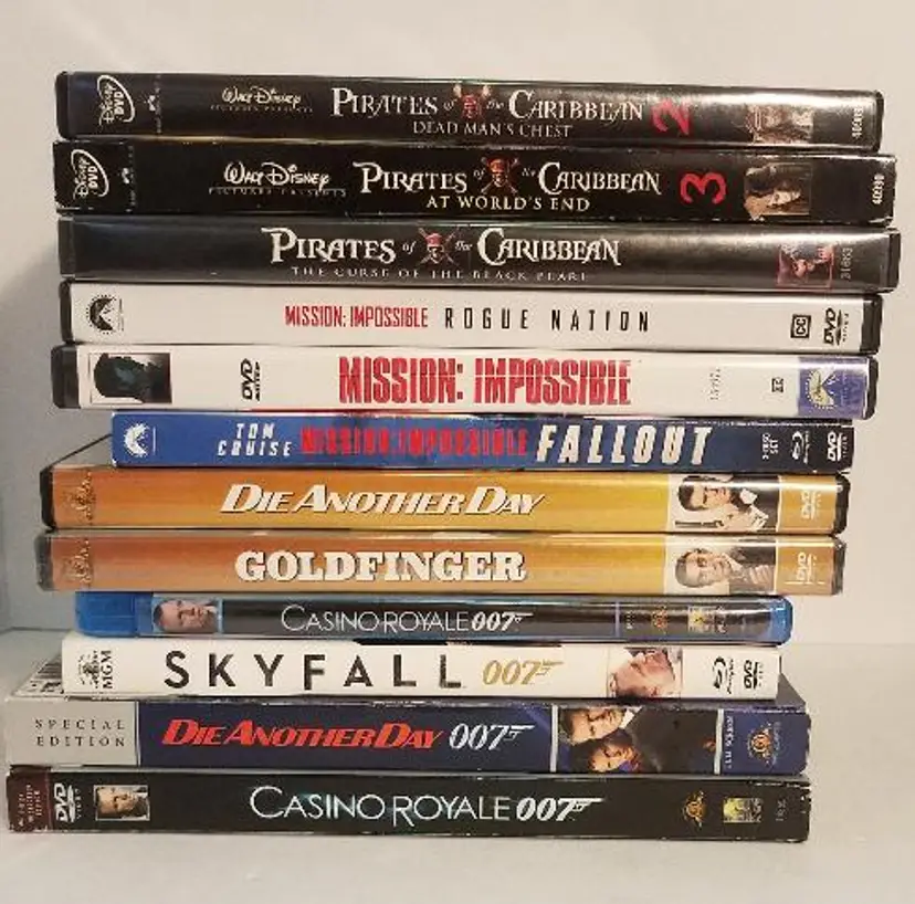 47 movie discs, a combination of DVDs and Blu-Rays. Some of the Blu-Rays also have the DVD included in the box. Comedies, action, adventure, and dramas. All in good condition. I just added 2 DVD which are not int he video, but are in the last photo posted.
