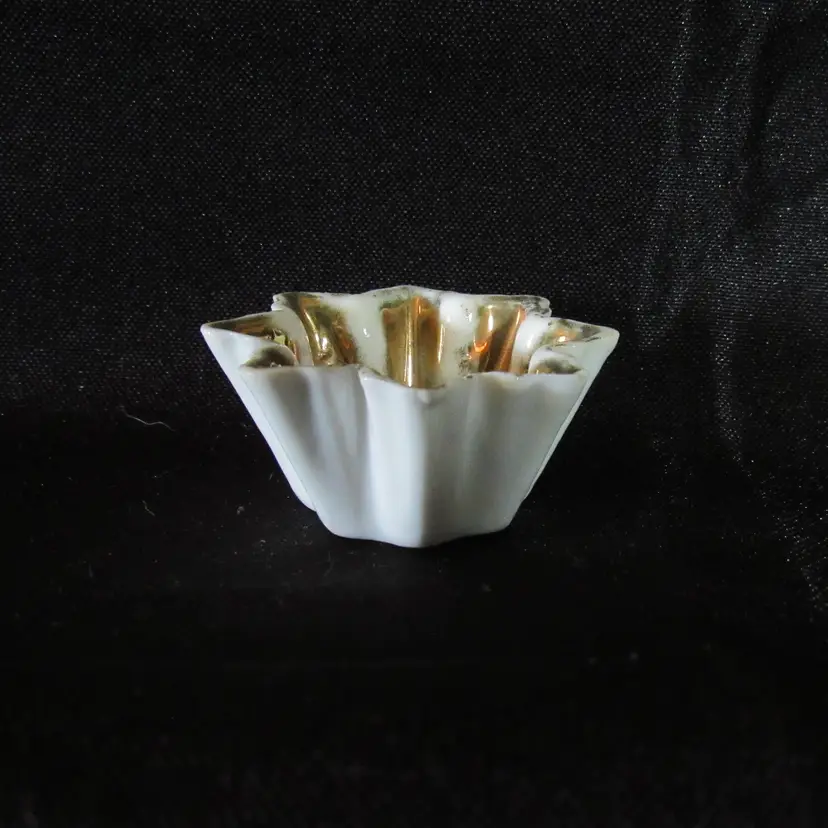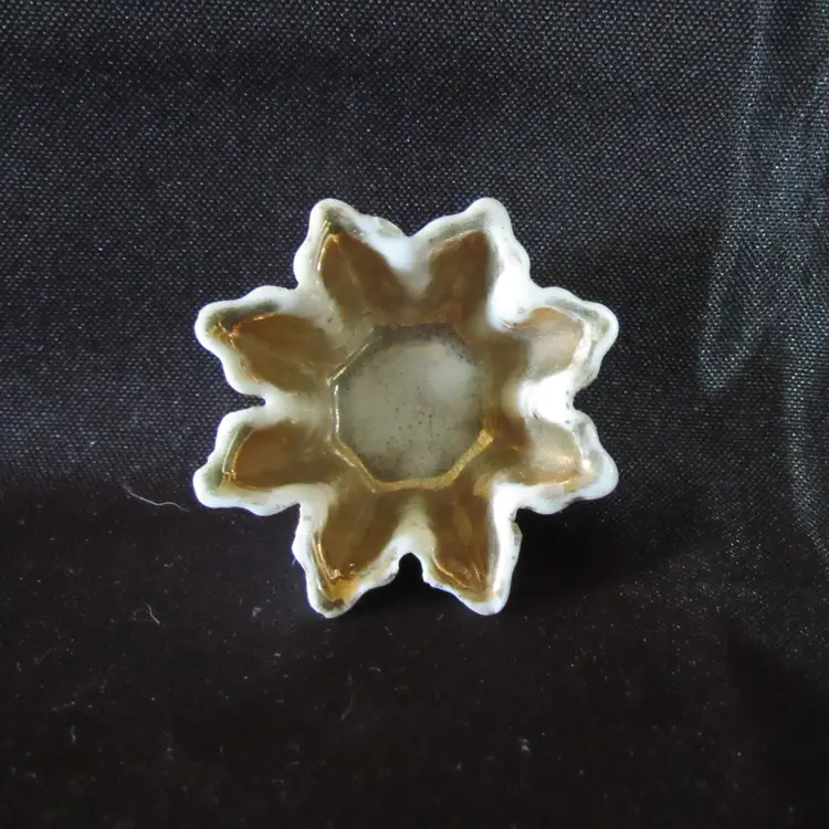 Flower shaped, the interior is gold Approx. 7/8" tall x 1 3/4 across Marked on bottom with the number 187 Excellent condition with no chips, cracks or breaks