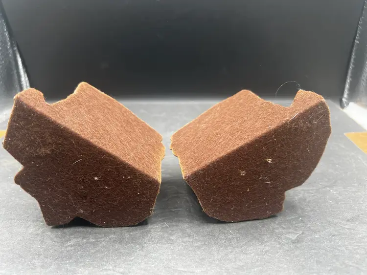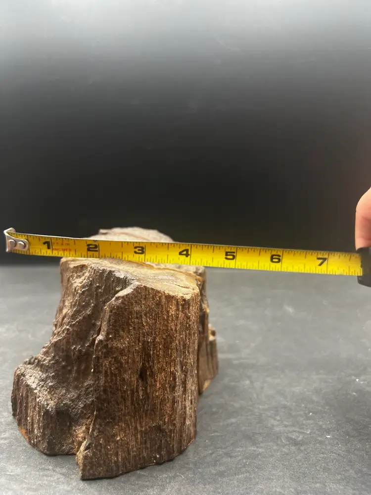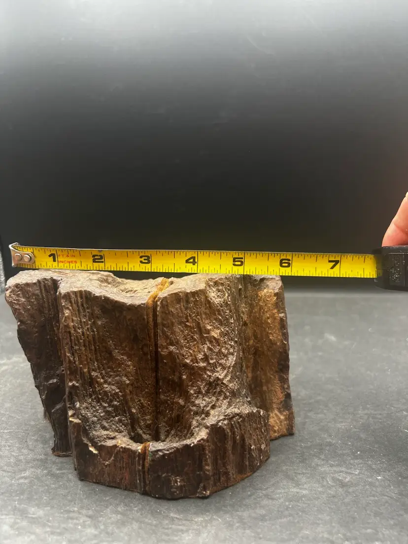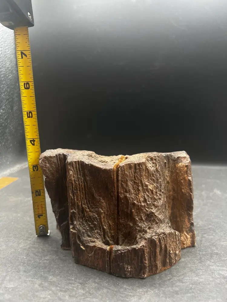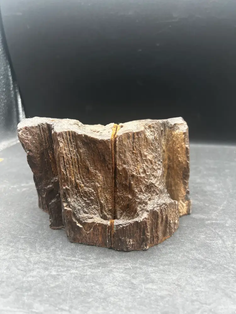 Unique unpolished half slice of a tree trunk showing rings, pits and the bark edges. Two cut sides of each are covered in felt to protect your surfaces Combined measurements are 3 1/2” tall x 6” x 4 1/2” and weighs 3.75 pounds