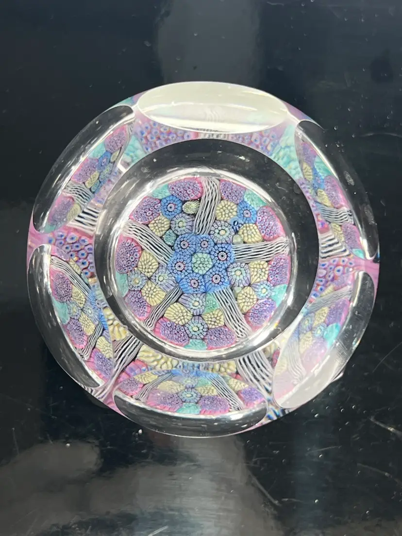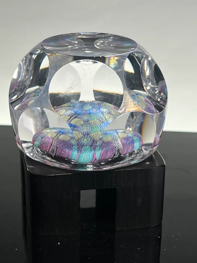 A really nice limited edition faceted glass paperweight with ID cane inside, a very special paperweight