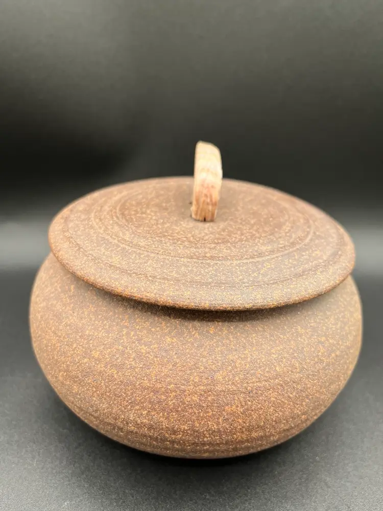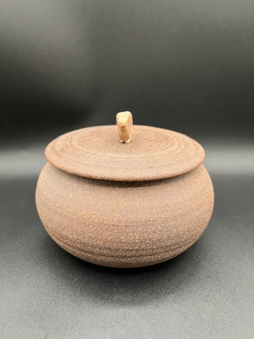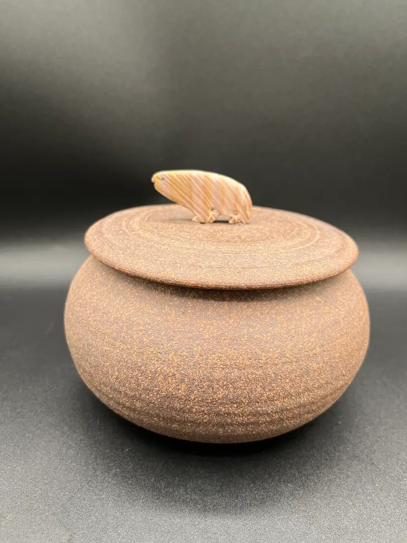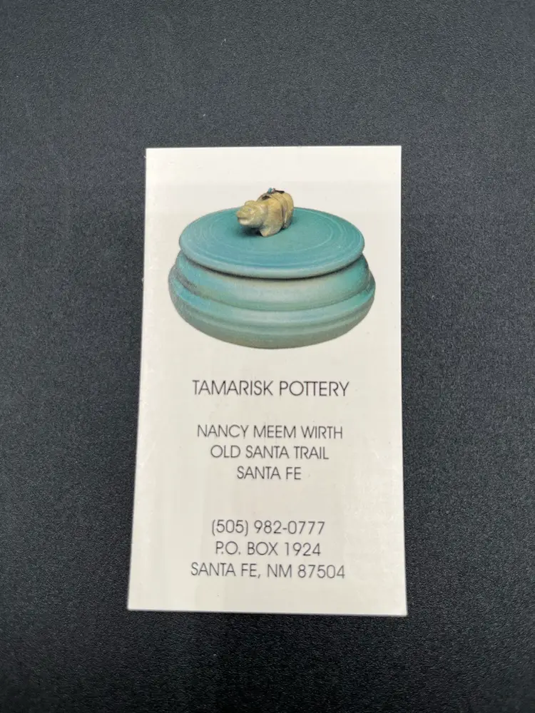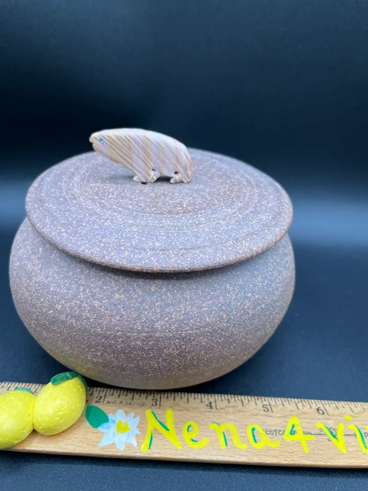 Signed Nancy Meem Wirth Tamarisk Pottery Lidded Bowl With Carved Stone Bear 5.5” 🐻
