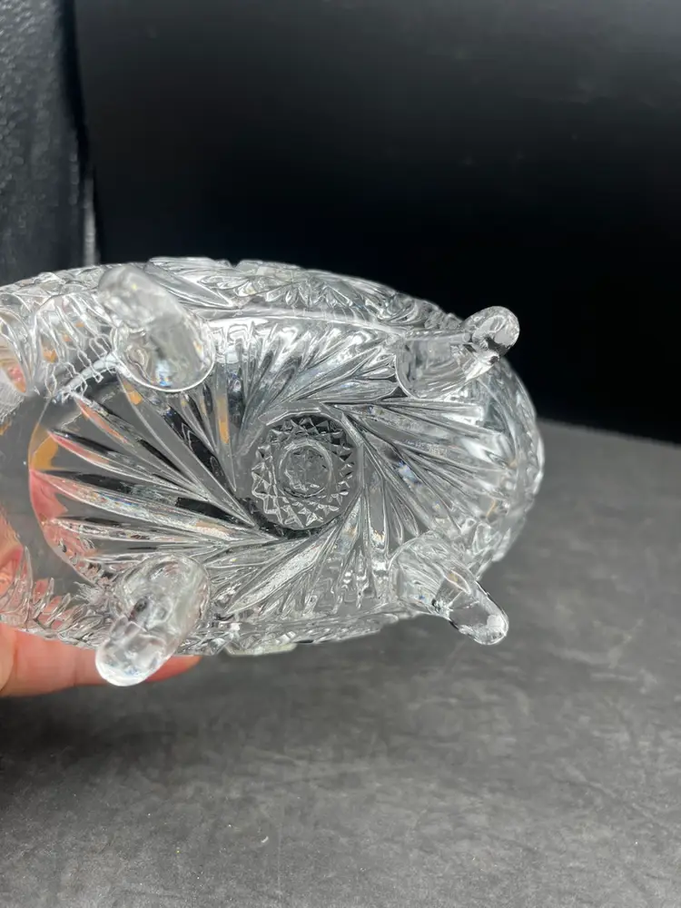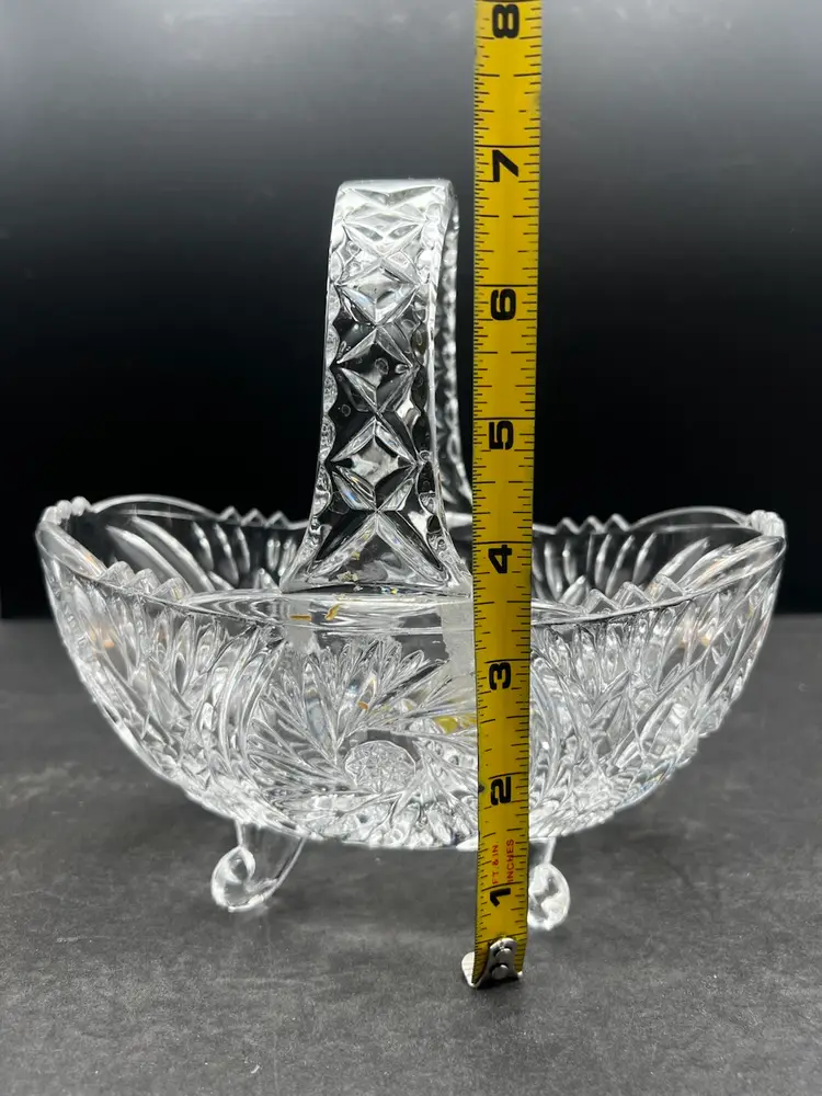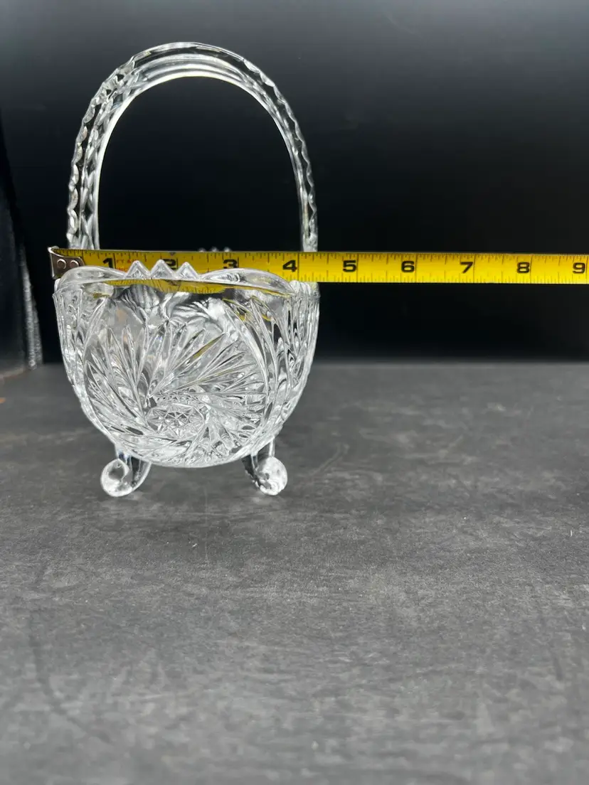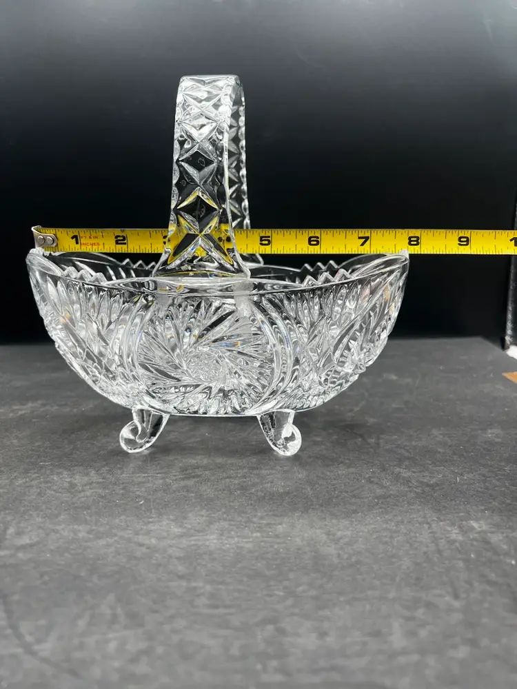 Beautiful Vintage Clear Cut Crystal Footed Basket In excellent condition no chips or cracks Stands about 7 1/2” tall x 8” x 4 1/4”