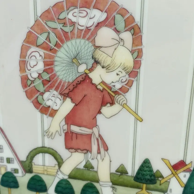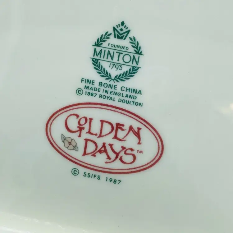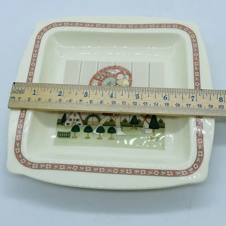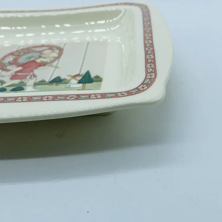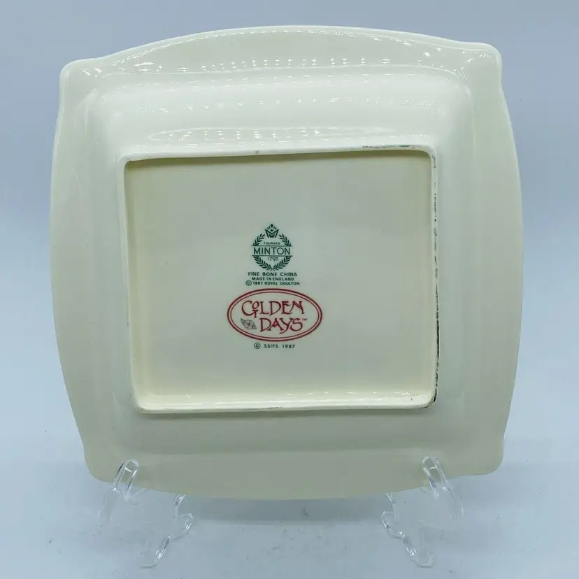Vintage Minton Royal Doulton Art Deco ‘Golden Days’ Fine Bone Square Plate. Sweet gift for her. 7.75” L x 7.75 W x 1” H. 1987 Girl with Umbrella. Made in England in 1980s Lovely decorative plate in excellent vintage condition with no chips or cracks
