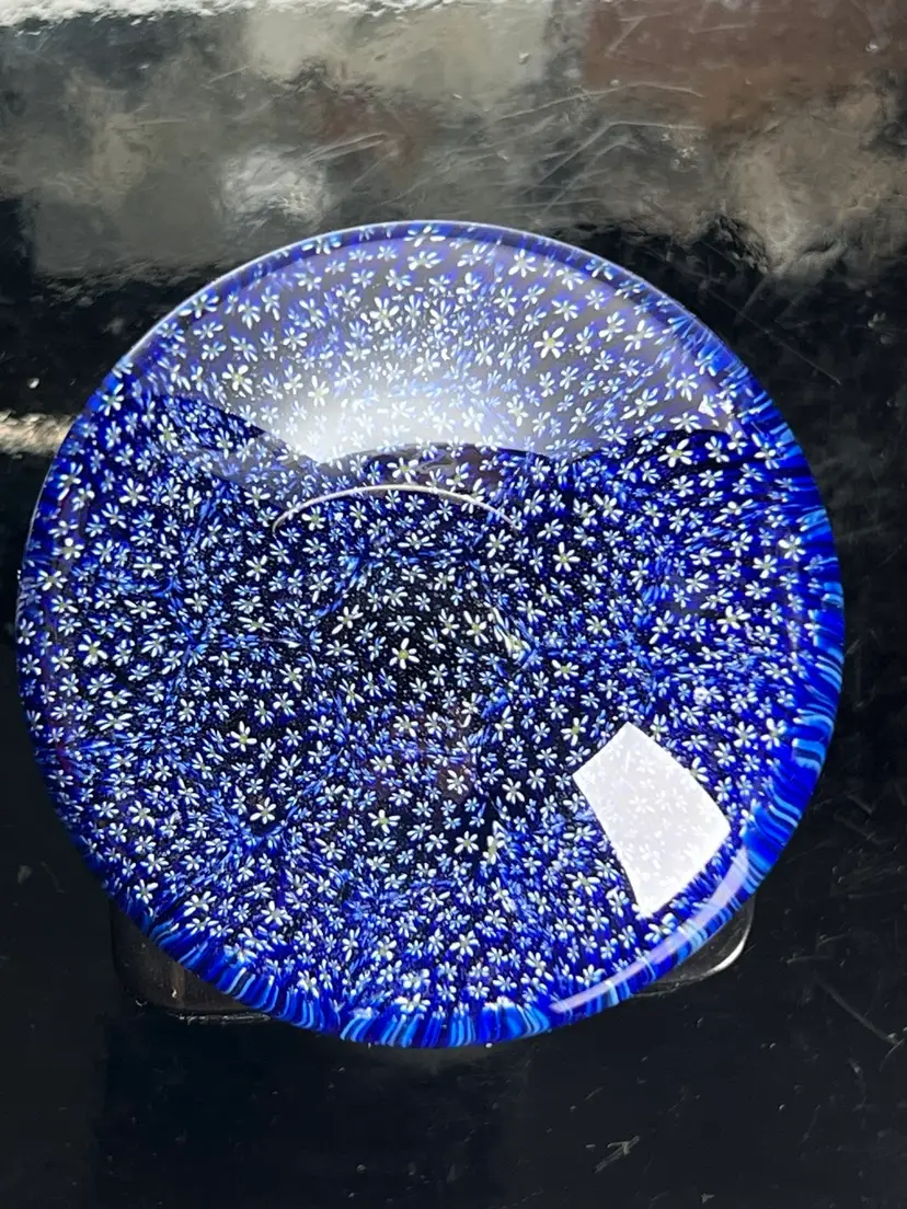 Beautiful micro millefiori flowers in the smallest size I’ve ever come across. Beautiful blue and white field of flowers. About 3” across