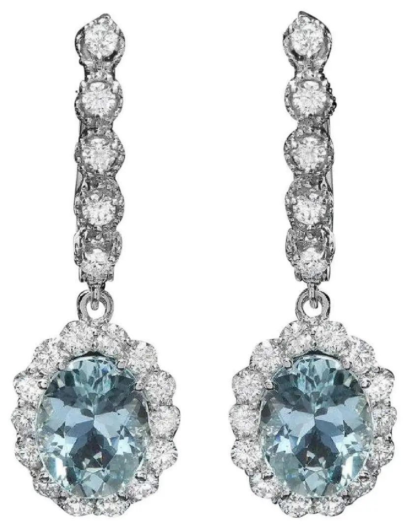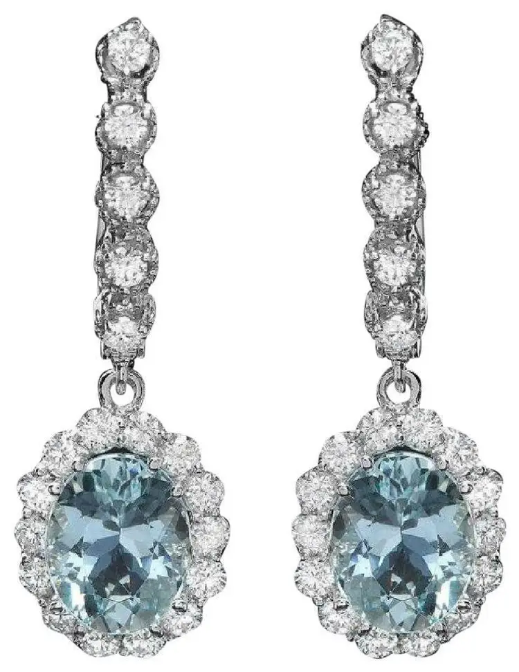 Modified Item: No Country/Region of Manufacture: United States Style: Drop/Dangle Main Stone Color: Blue Main Stone Treatment: Heating Metal Purity: 14k Main Stone: Aquamarine Main Stone Creation: Natural Metal: White Gold Total Carat Weight (TCW): 5.00 Main Stone Shape: Oval Type: Earrings Material: Gemstone Brand: Unbranded