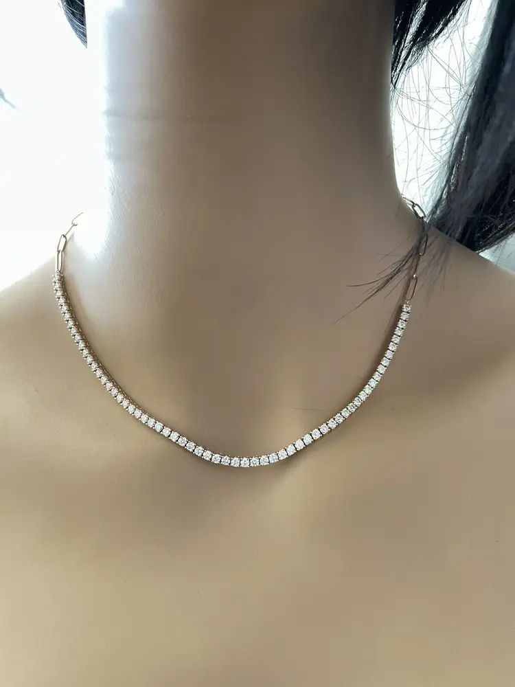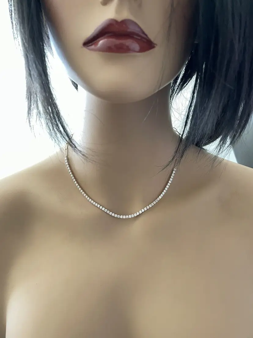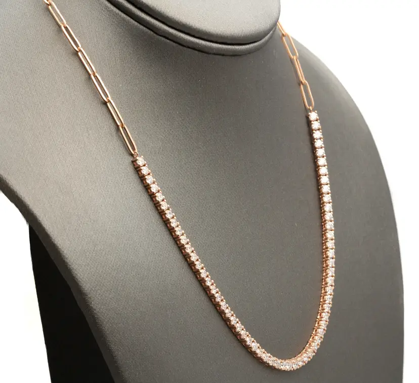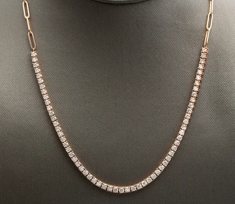 Cut: Excellent Main Stone Creation: Natural Diamond Color: G-H Fancy Diamond Color: White Length (inches): 17 Metal: Rose Gold Clarity: SI1-SI2 Secondary Stone: Diamond Main Stone: Diamond Brand: Unbranded Main Stone Treatment: Not Enhanced Type: Necklace Metal Purity: 14k Main Stone Shape: Round Style: Chain, Tennis Total Carat Weight (TCW): 5.00