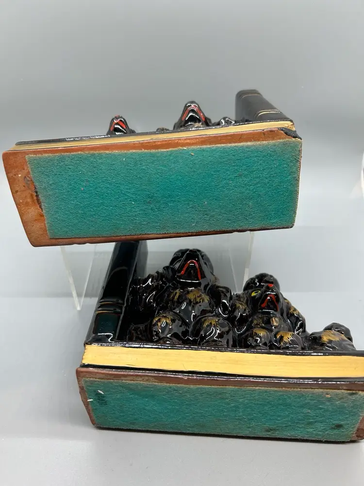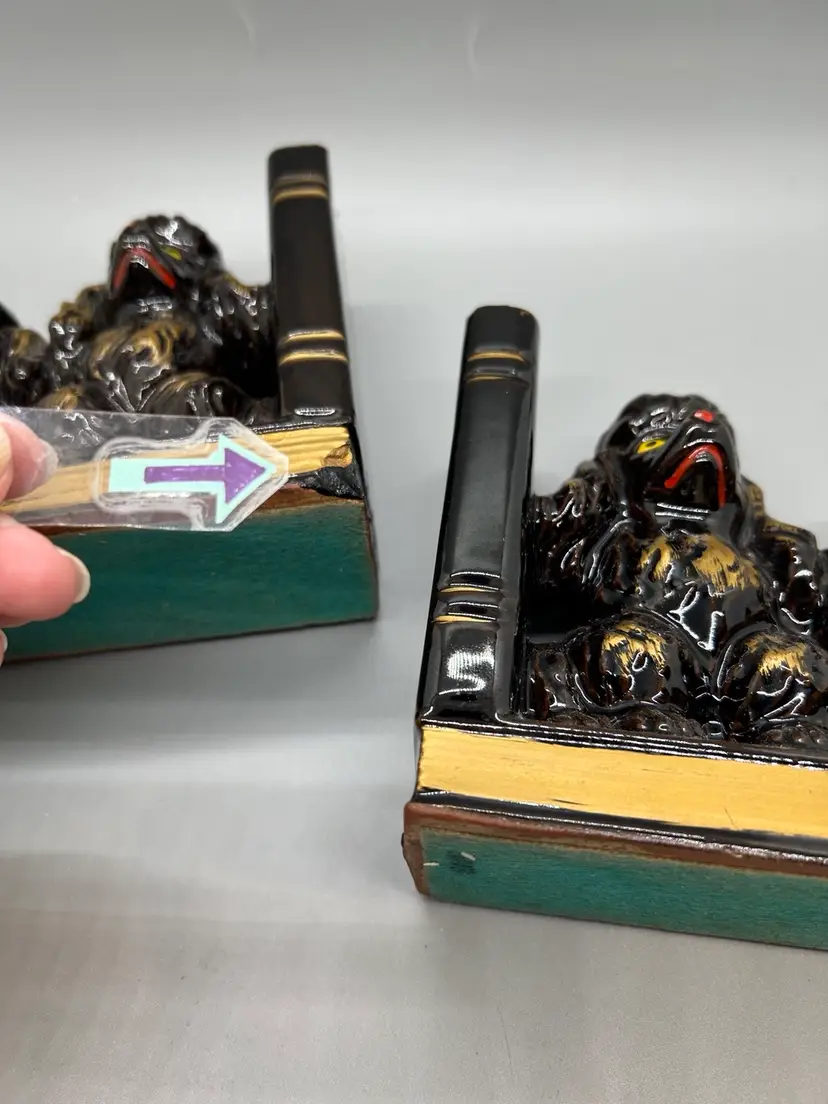 6” tall 6” wide Has a chip on the corner of one that was repainted. Felted golf course bottoms