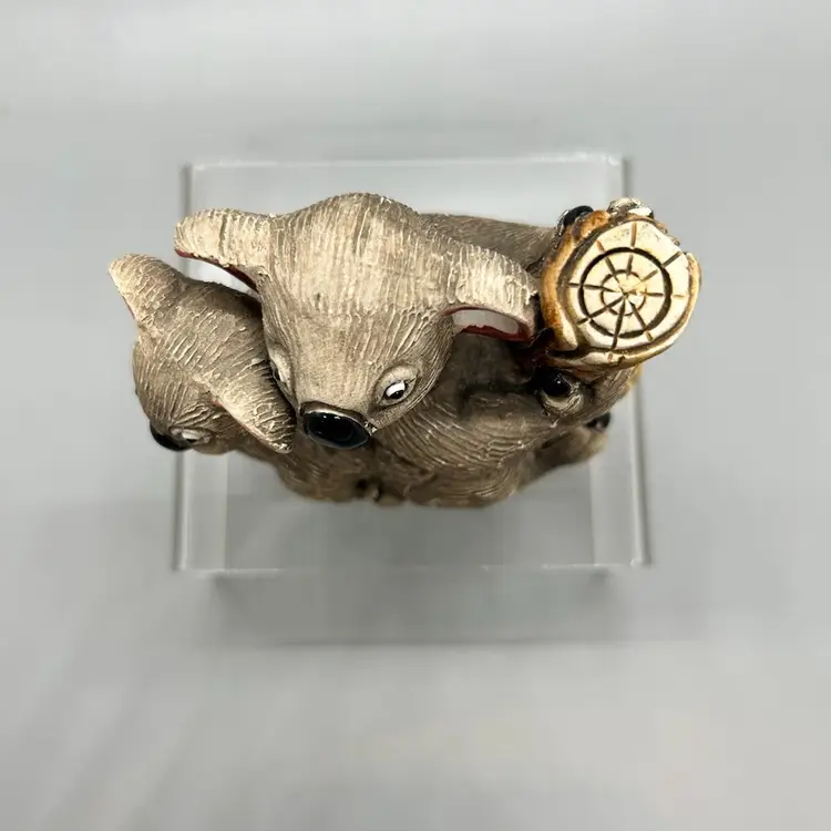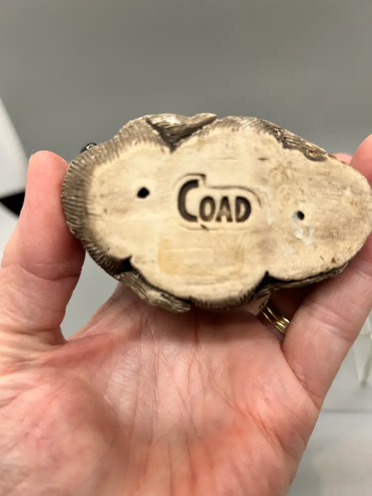 Enamel has some chipping in places - on the little one’s eye and on the back on his finger 3” tall 4” wide