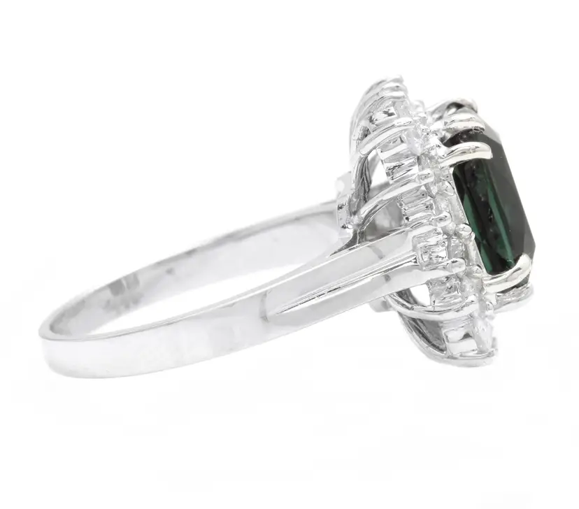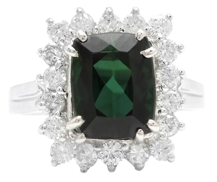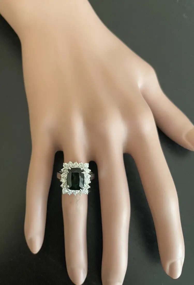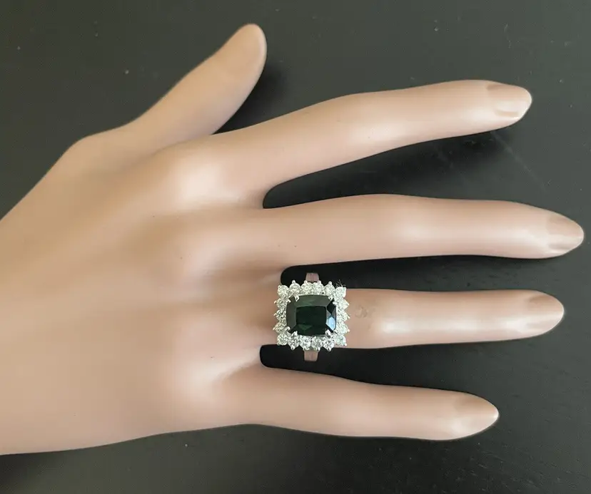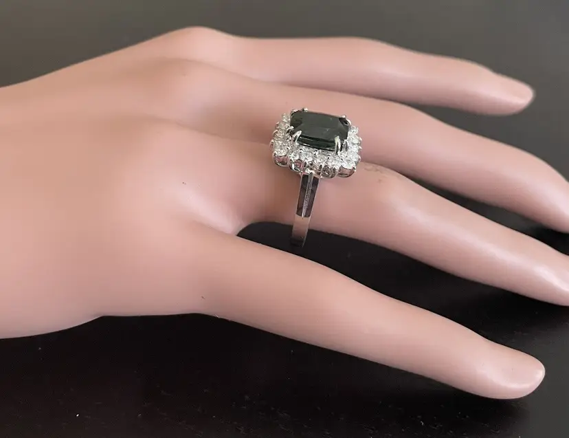 Modified Item: No Total Carat Weight (TCW): 5.70 Type: Ring Secondary Stone: Tourmaline Main Stone Color: Green Brand: Unbranded Ring Size: 7 Main Stone Shape: Cushion Theme: Nature Main Stone Treatment: Heating Metal Purity: 14k Main Stone: Tourmaline Sizable: Yes Main Stone Creation: Natural Metal: White Gold