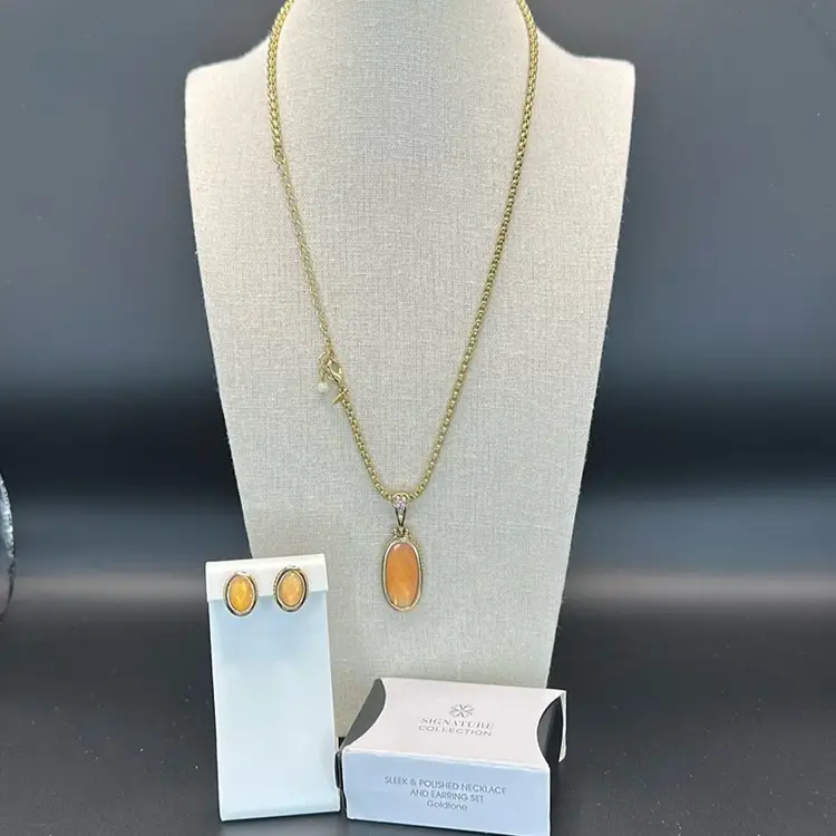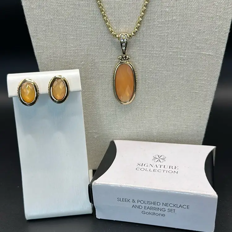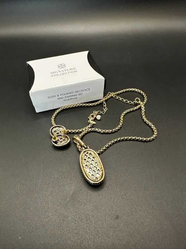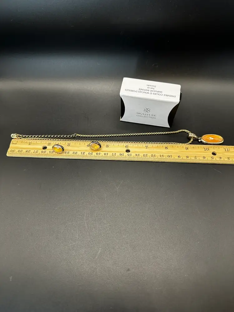 Tag stamped SHB. Total hanging length is 9.75 to 11 inches, necklace is 20 inches total. Lobster claw closure. Post back earrings about 1/2 inch.