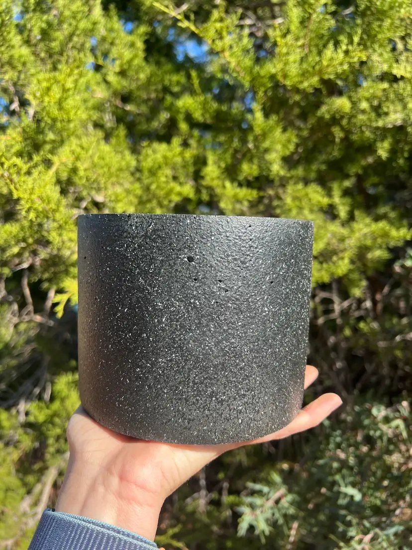 Hand poured concrete planter using paint and texture for color. Drainage included.
