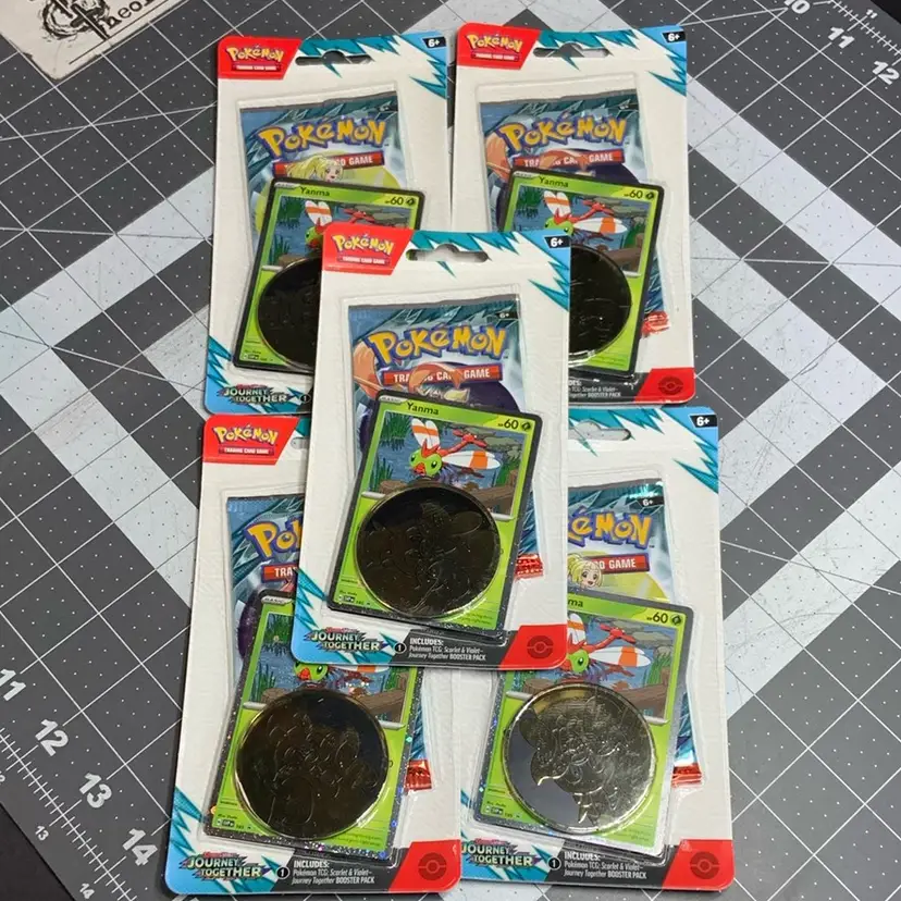 New sealed Pokemon cards. Product will be shipped timely and packed with care. 5 Journey together packs with promo cards and coins. See pictures. Returns are not available if products are opened.