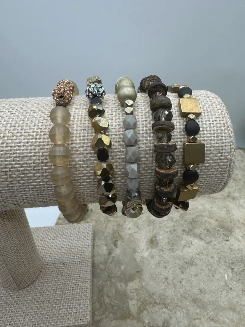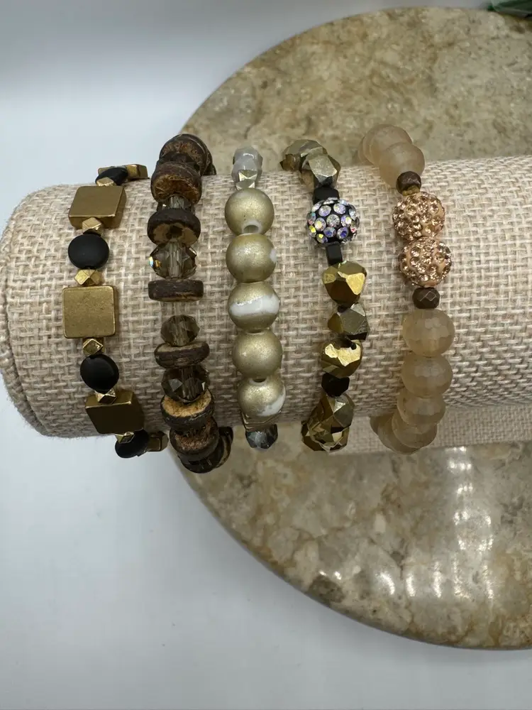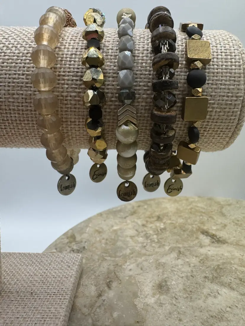 This is a set of five Ermish bracelets. The bracelets are handmade and beaded, with a signature from the brand. They are stackable and awesome. Perfect for adding a unique touch to any outfit, these bracelets are a stylish and quality accessory. Great condition. Size 7