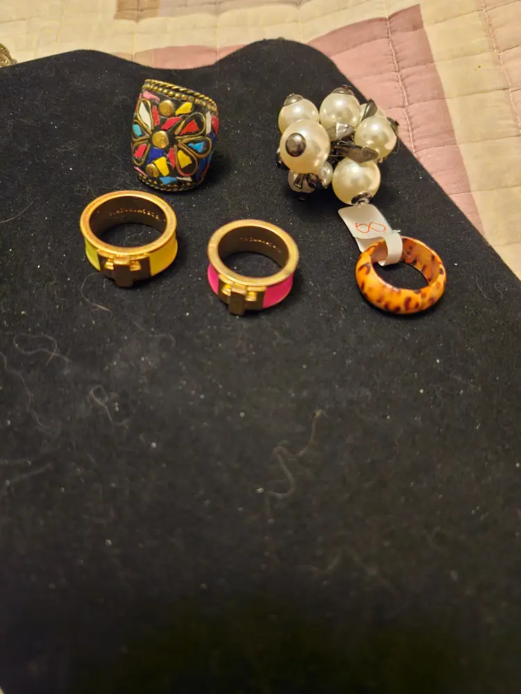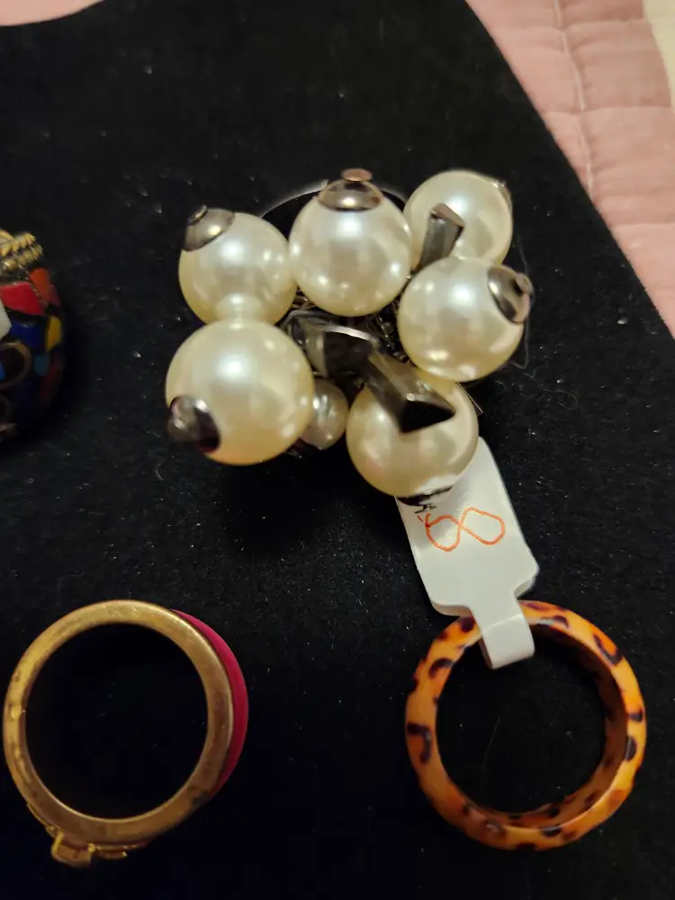 Around size 8..the pink and yellow are by bcbg. The leapord one is wood.one is pearl bombals and one is tibetin.if you want just one or 2 let me know and ill make another listing for you