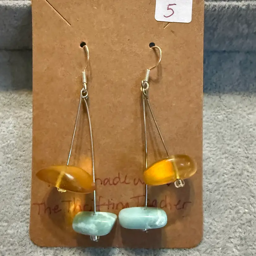 #5 Larimar & Amber Earrings .925 Hooks HANDMADE BY ME