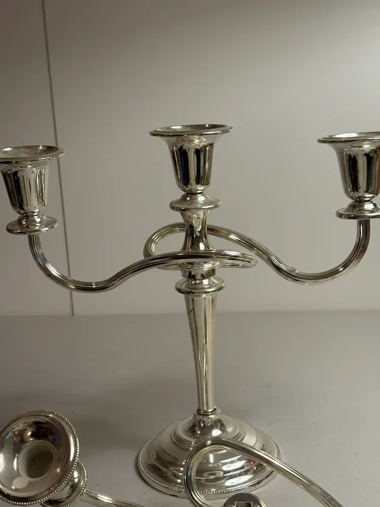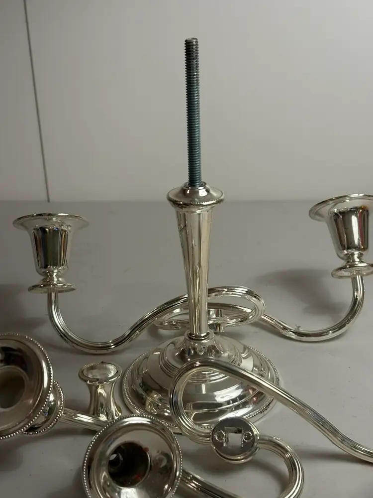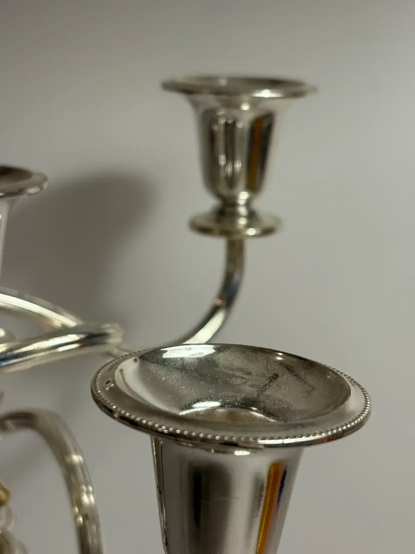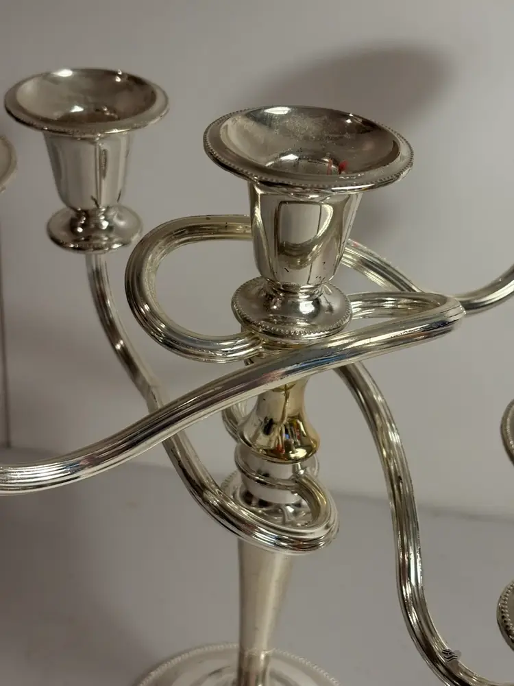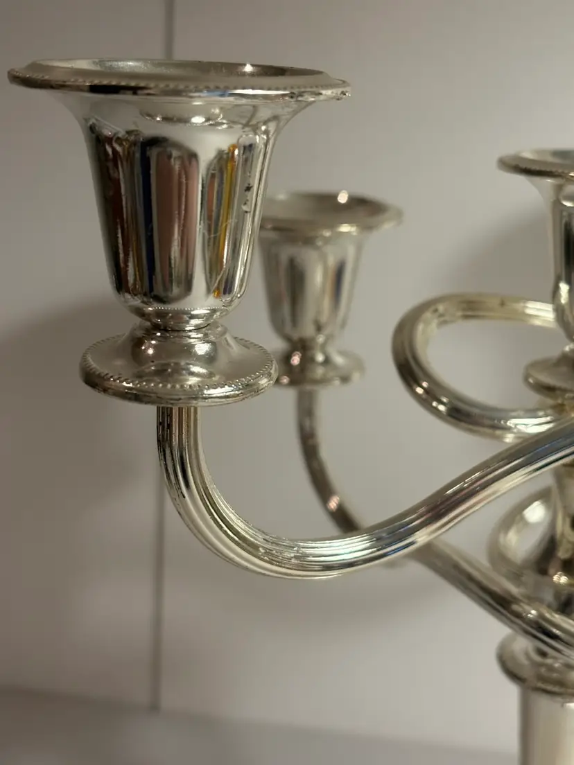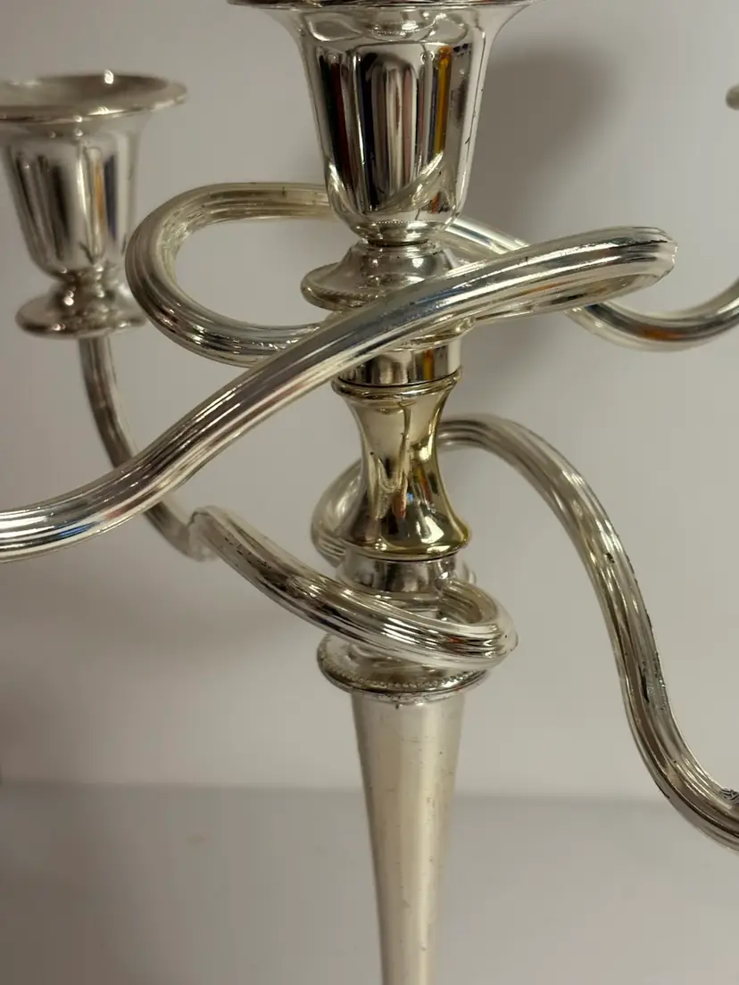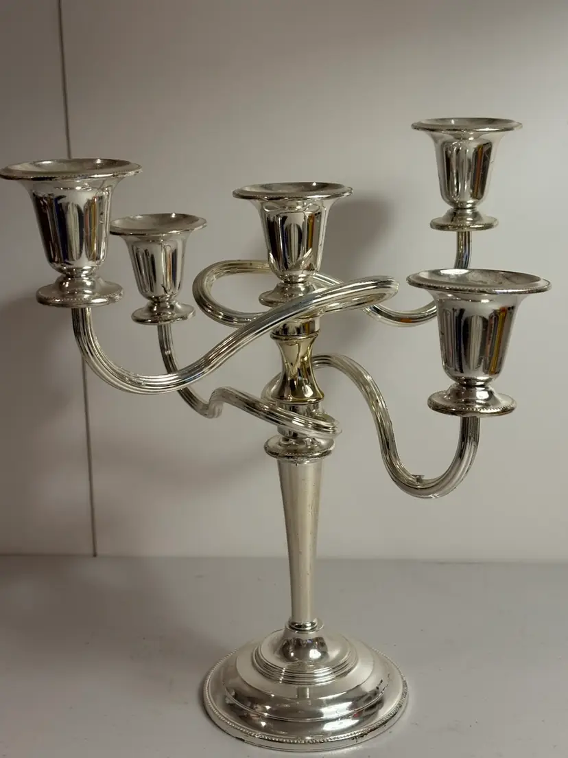 The 5 Light Zinc Silver Plate Twisted adjustable Candelabra is a beautifully crafted silverplate piece that is sure to add elegance to any room. This candelabra can be adjusted in size as it does unscrew. With its twisted design and ability to hold up to 5 candles, it provides a versatile and stylish lighting solution. Perfect for use with pillar candles or as a decorative statement piece, this candelabra is a timeless and classic addition to any antique or modern home decor.