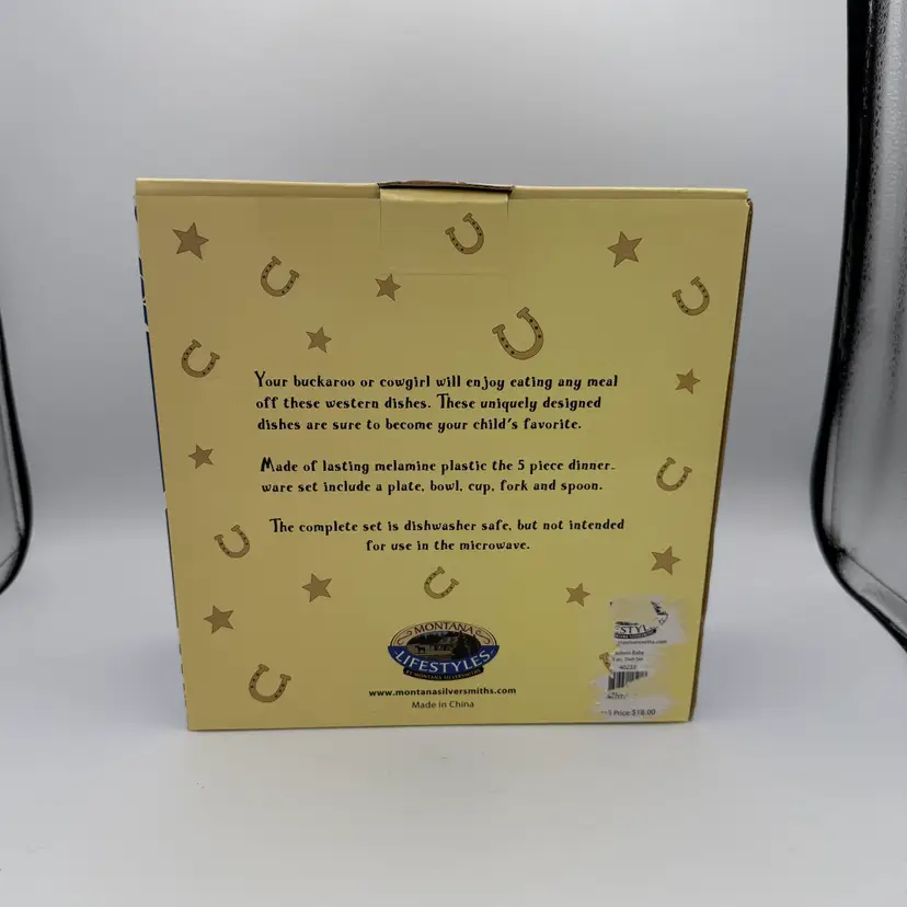 5 Piece Western Melamine Dinnerware Set - Includes plate, bowl, cup, fork and spoon. New Old Stock.