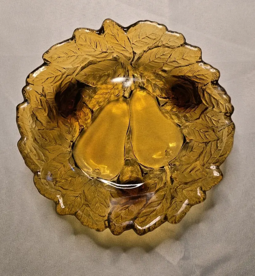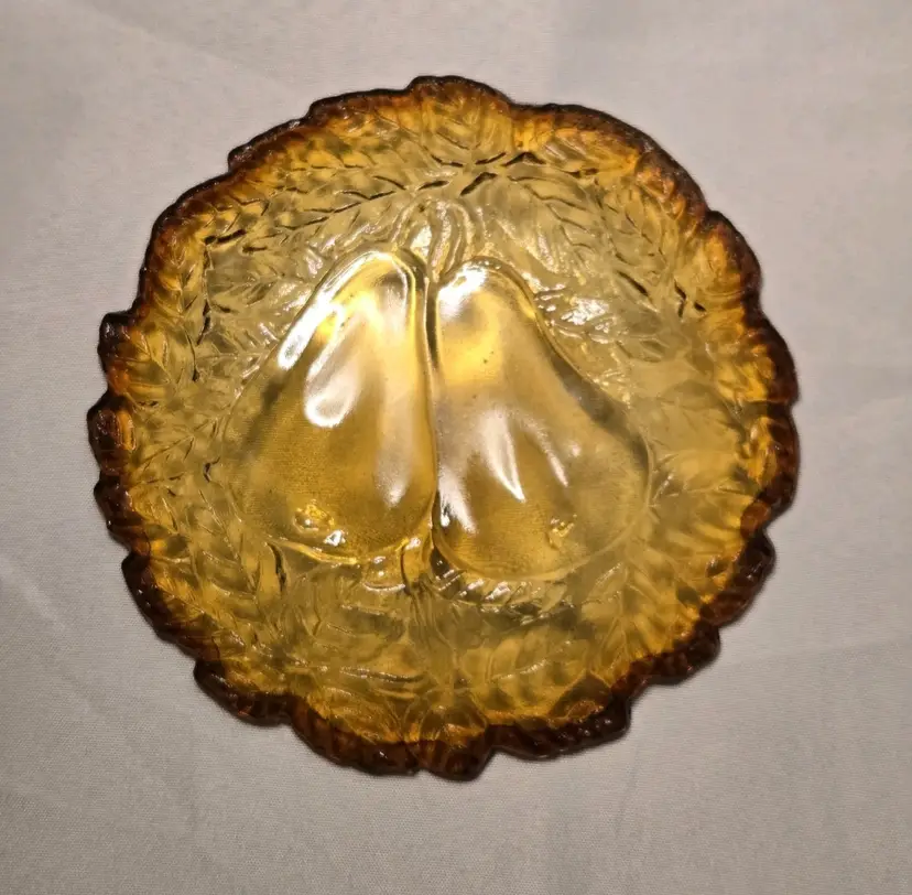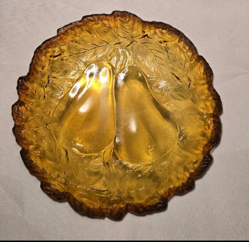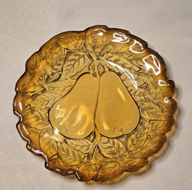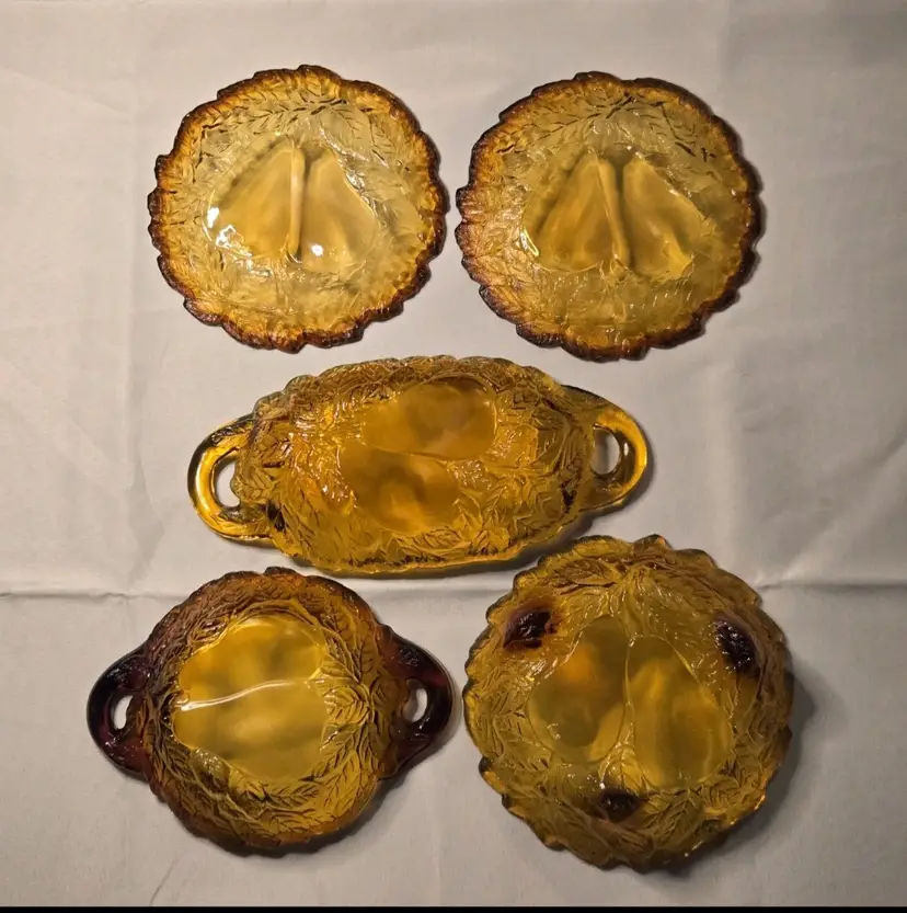 5 PIECES!!! HOLIDAY SERVING DECOR! VINTAGE BURNT HONEY AMBER TIARA INDIANA GLASS PEAR DESIGN