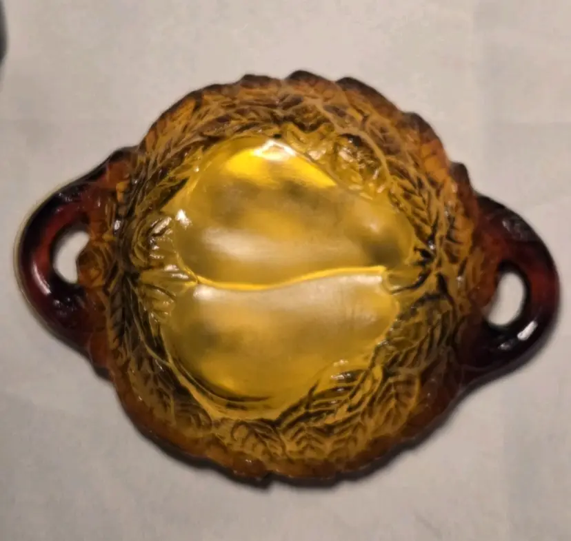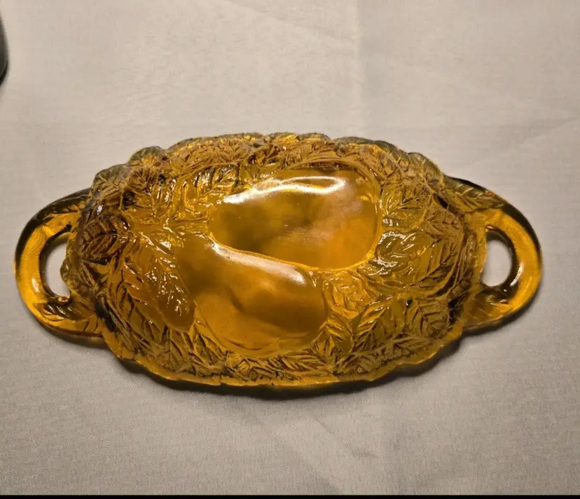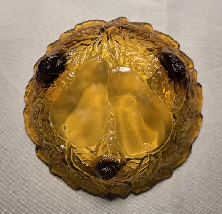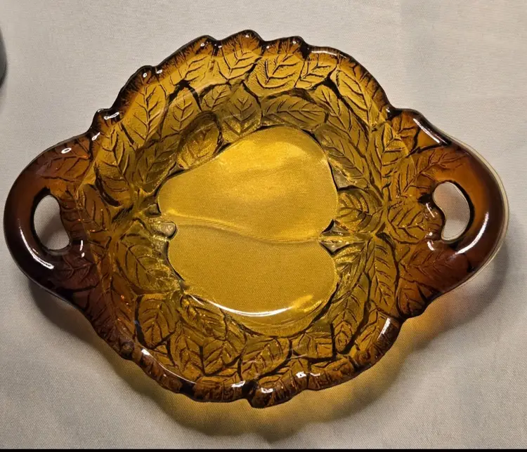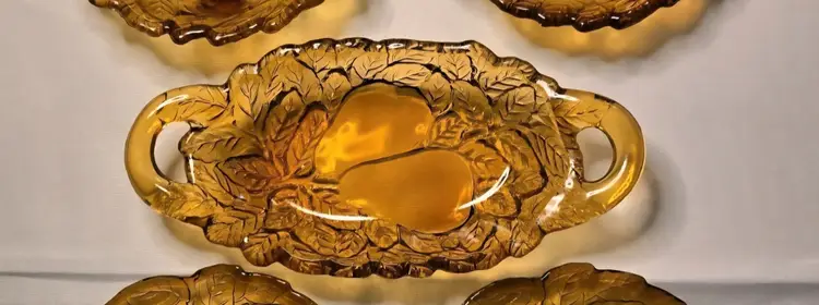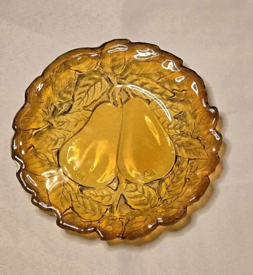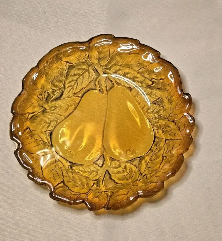 5 PIECES!!! HOLIDAY SERVING DECOR! VINTAGE BURNT HONEY AMBER TIARA INDIANA GLASS PEAR DESIGN