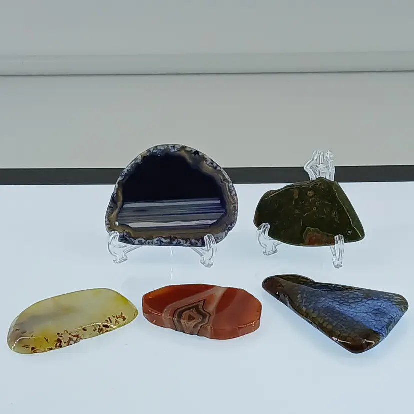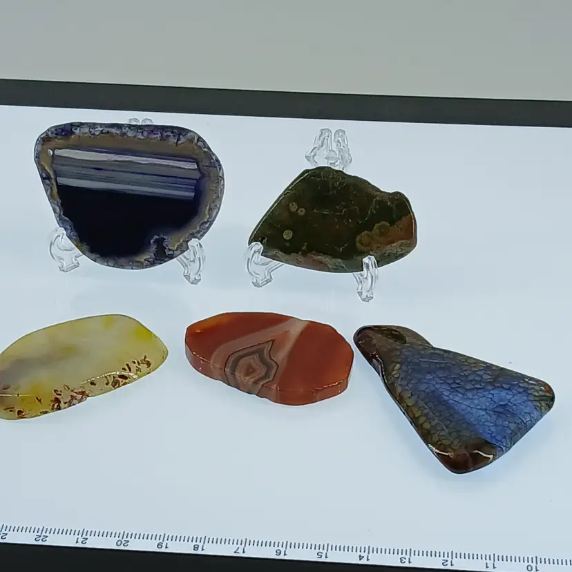 GSL-05 – Qty 5 Mixed Polished Gemstones. All have hole drilled at top for bails.
