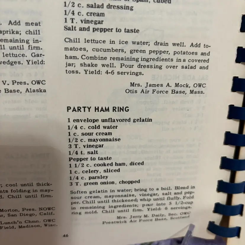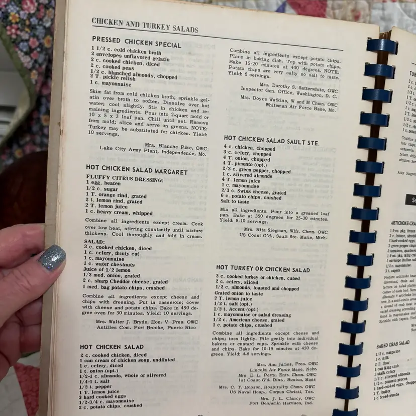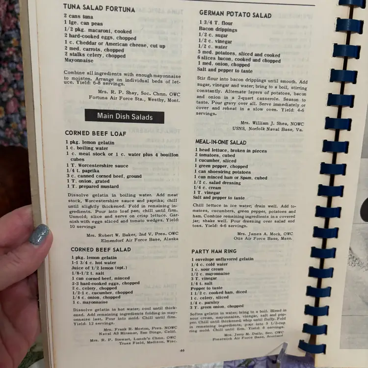 Meats including Seafood and Poultry. 2000 world wide favorites of Military wives. Spiral bound