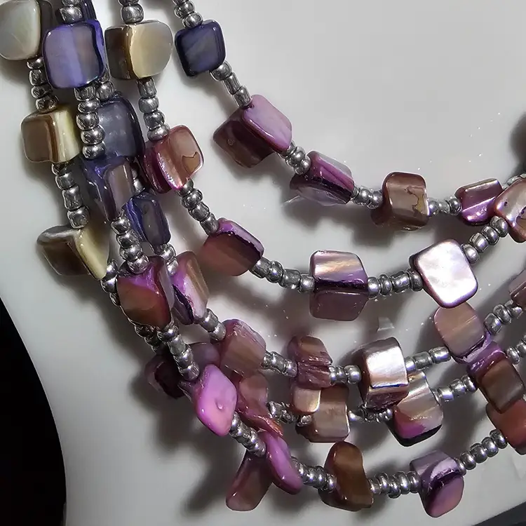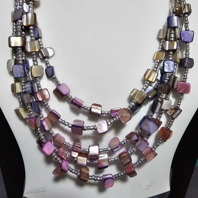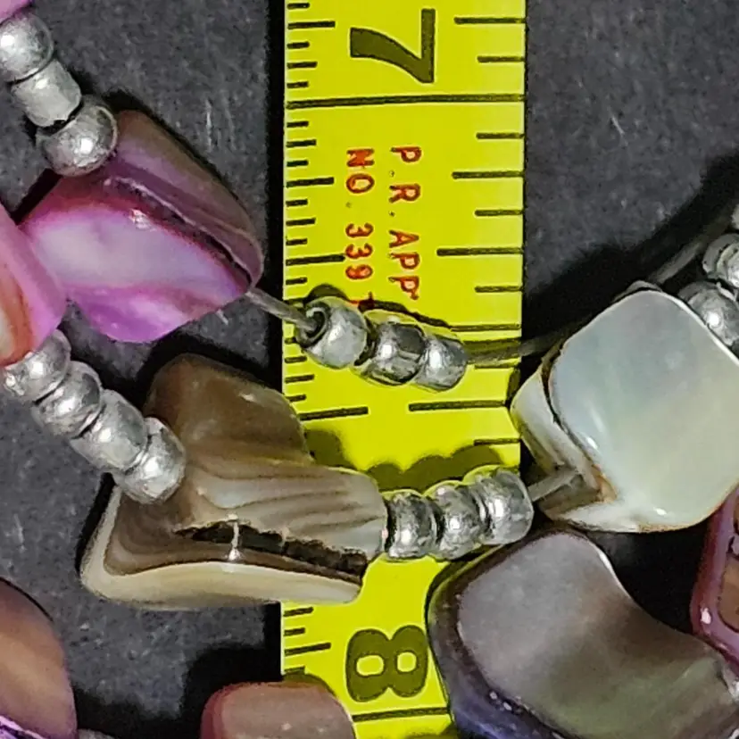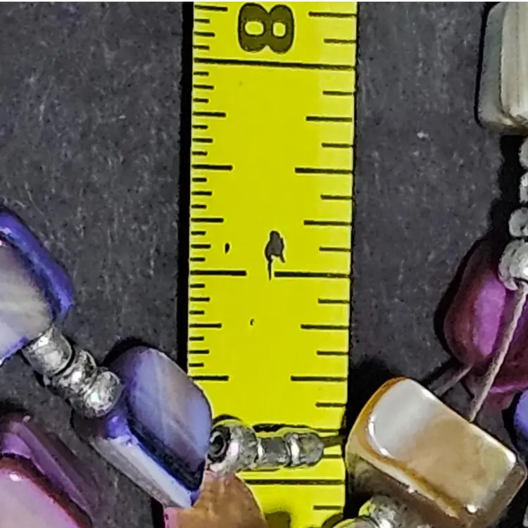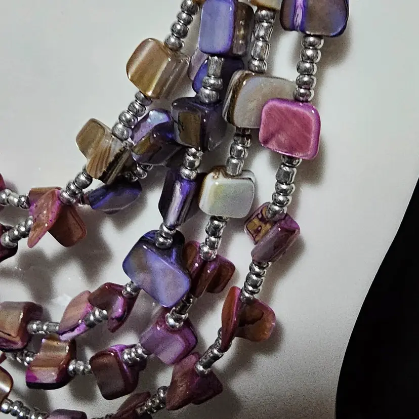 Very colorful abalone chip shell adjustable chain necklace. 15" to 18" in drop lenght! The hardware is Not Sterling Silver! If you have any questions please feel free to message me! 🦊Have A Wonderful Foxy Stang Day!!!🦊