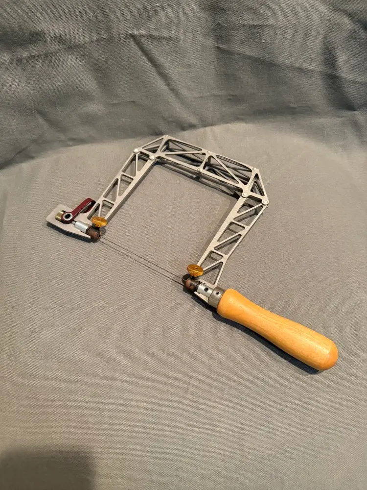 Knew Concepts says they can’t get titanium right now so this saw is out of production. Here’s one, though. Some discoloration on the blade clamps (see photos) but otherwise excellent.