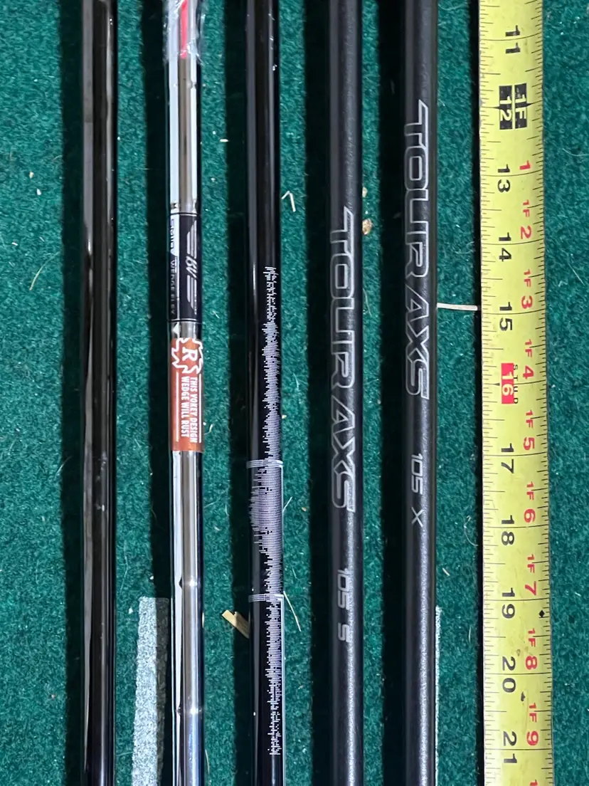 5 wedge pulls length as follows LA Golf Tour AXS 105s 36 inches LA Golf Tour AXS 105 S 34.5 Mitsubishi MMT TX 125 35 inches New Vokey SM10 35 34 inches Black with pure grip.(KBS I think) 33.75 inches