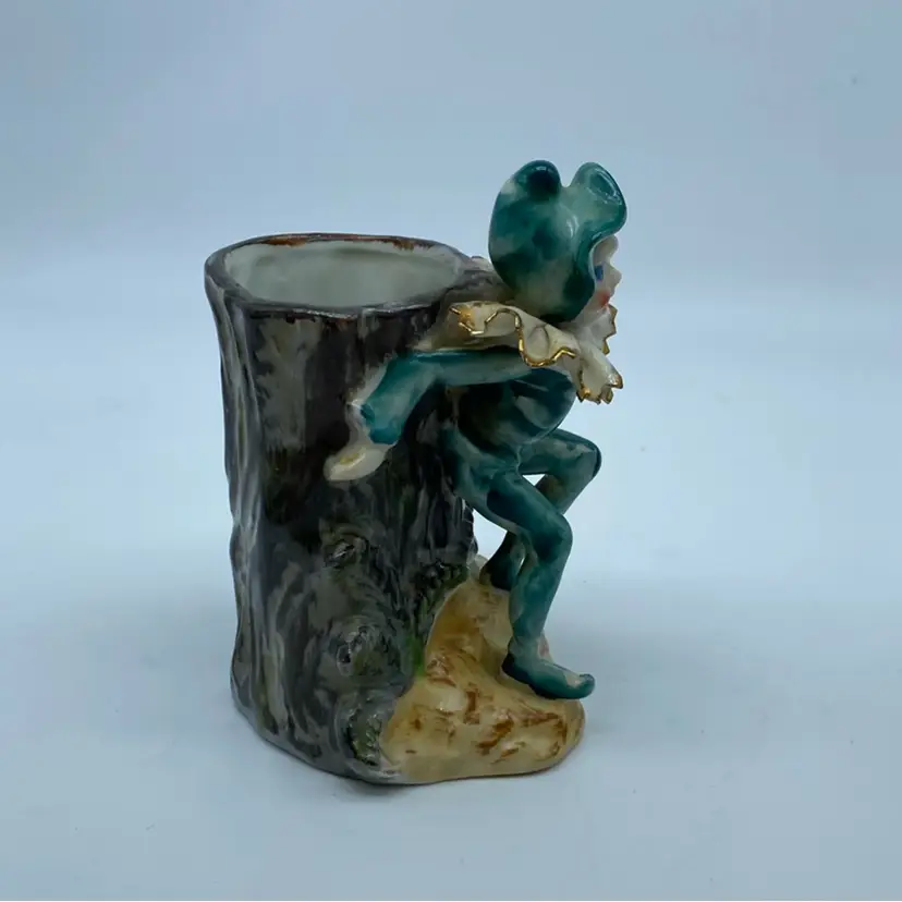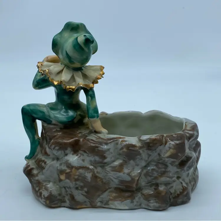 Ceramics from Japan, particularly those produced in the mid-20th century, often featured whimsical and decorative designs, catering to a global market with items like figurines, planters, and novelty ceramics. These pieces, often referred to as 'Kitsch,' were mass-produced but frequently showcased detailed hand-painting and charming, playful themes. Many were distributed by import companies like UCAGCO (United China and Glass Company), which sourced goods from various Japanese manufacturers.