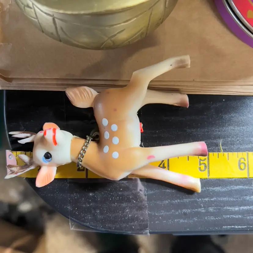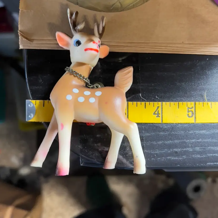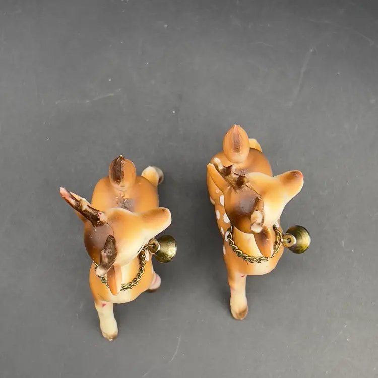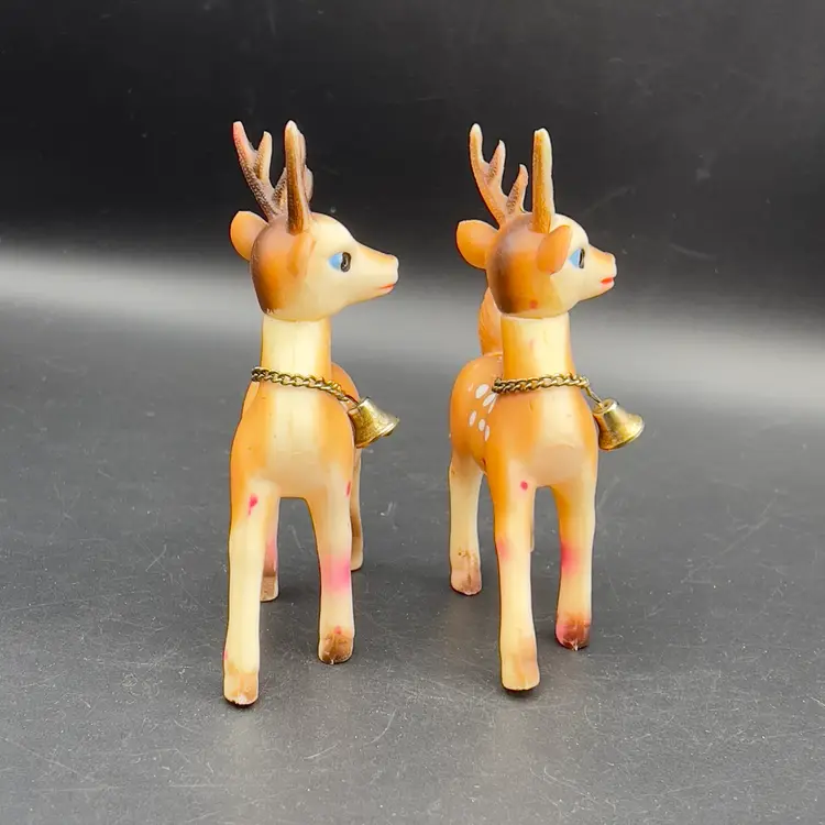 50s Plastic Reindeer with Bell Swivel Head Set Of 2 JAPAN 5" tall Condition: Preowned .