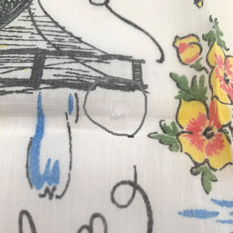 One dark spot and one small hole, measures approx. 12” x 12”.