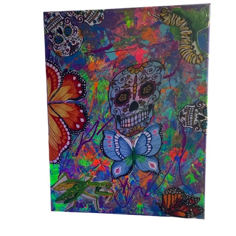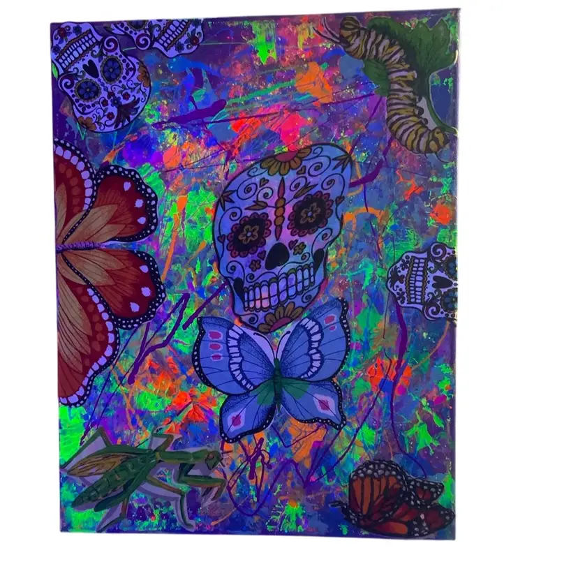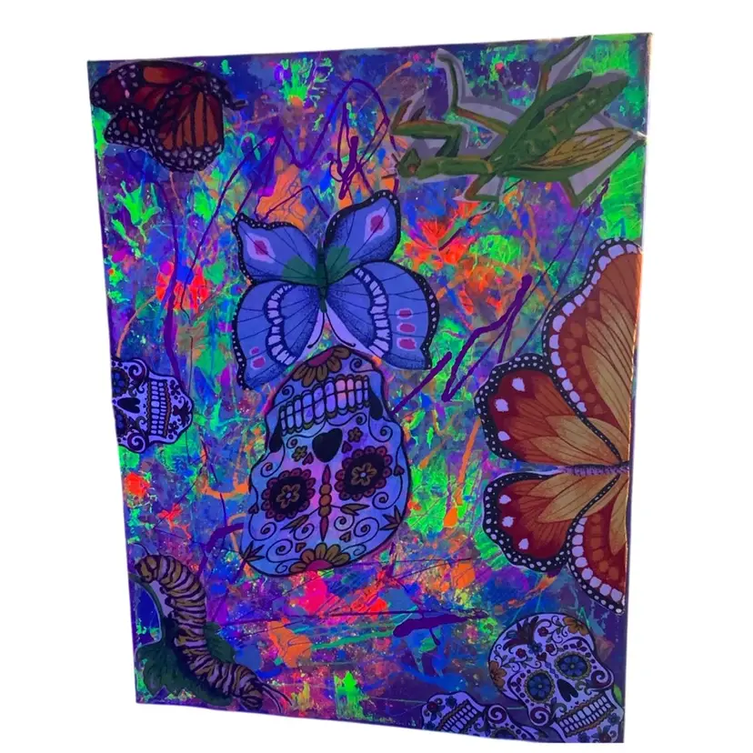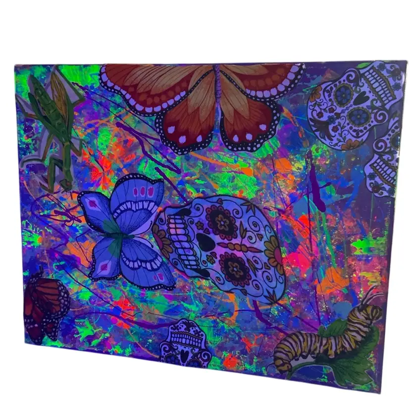 Original artwork for the Party like it’s 1999, Celebrating the 90s and 2000s. abstract painting, characterized by its non-representational style that emphasizes color, form, and texture over realistic depiction. Key features include: Style: Abstract expressionism, possibly influenced by action painting, evident in the dynamic and spontaneous application of paint. & Technique: Drip and splatter painting, creating a layered effect with vibrant colors. Color Palette: A mix of bright, contrasting colors such as blues, greens, oranges, pinks, and purples, contributing to the painting's energetic feel. Composition: Non-figurative, with no recognizable objects, allowing for personal interpretation and emotional Texture: The layering and splattering techniques create a varied texture, adding depth to the artwork. Interpretation: Abstract art aims to evoke emotions and ideas 14” by 11”