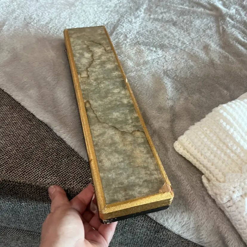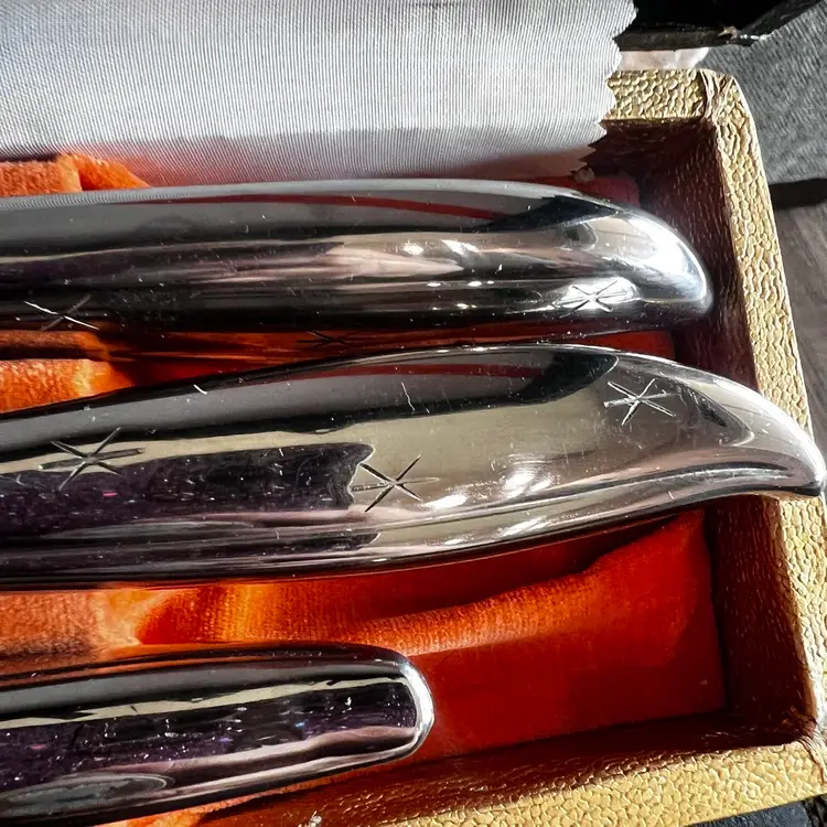 These have that amazing star on them they are made in Japan stainless steel they do have marks on them, so does the case the case also has some water damage but still amazing