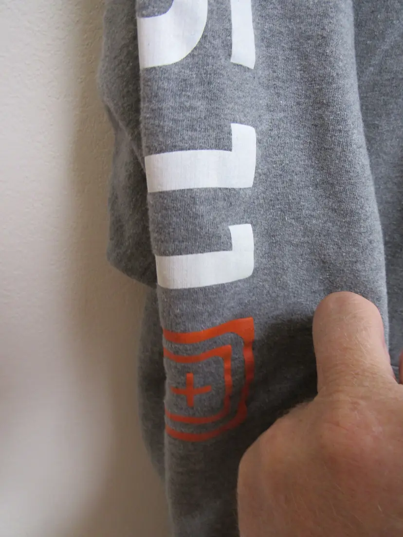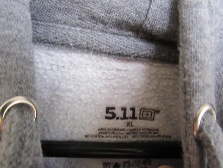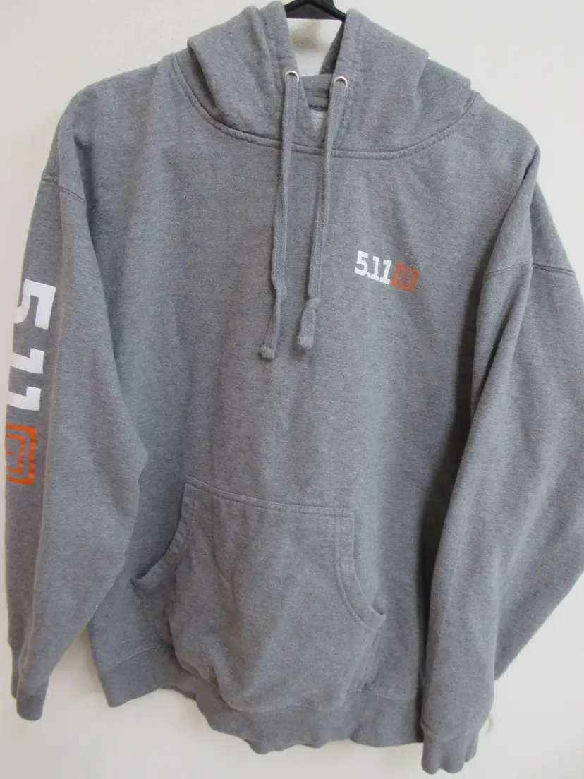5.11 Tactical gray fleece hooded sweatshirt. Size XL. 24" armpit to armpit and 26.5" top of collar to bottom of hem. Nice condition. 4373