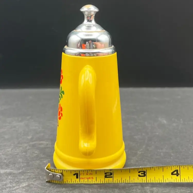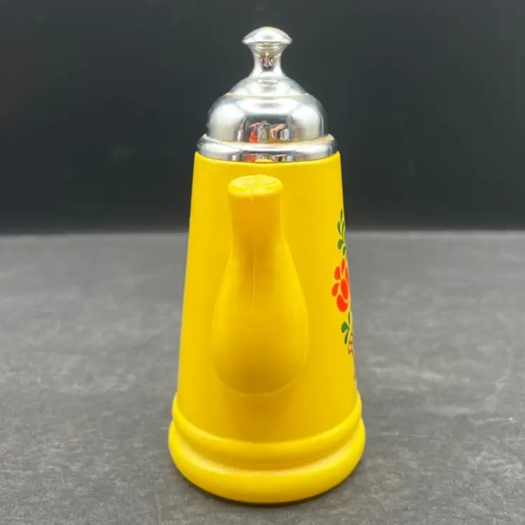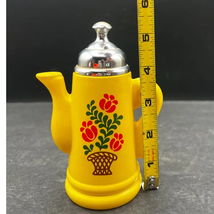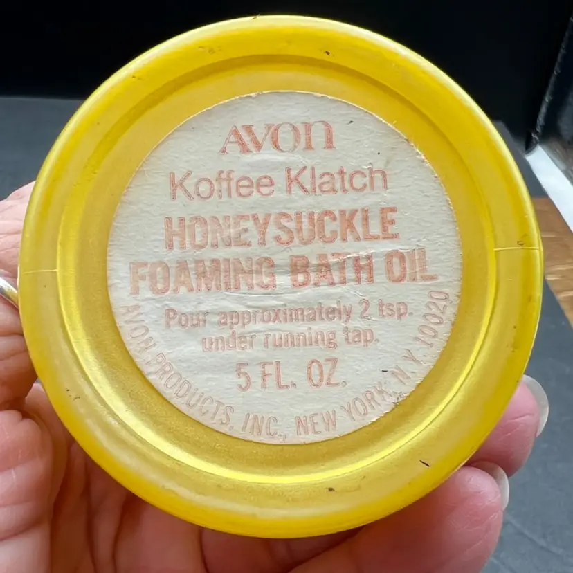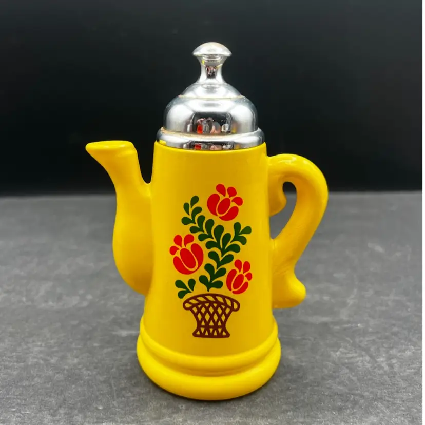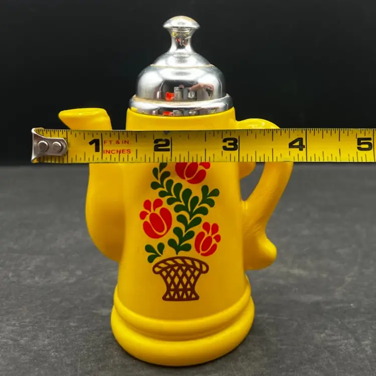 Vintage 1970’s Avon Yellow Koffee Klatch Teapot/Pitcher Honeysuckle Foaming Bath Oil Bottle Empty In very good condition no chips or cracks and decal is intact as well as label on bottom. Lid is also in good condition Stands 5 1/2” tall x 3 1/2” x 2 1/2”