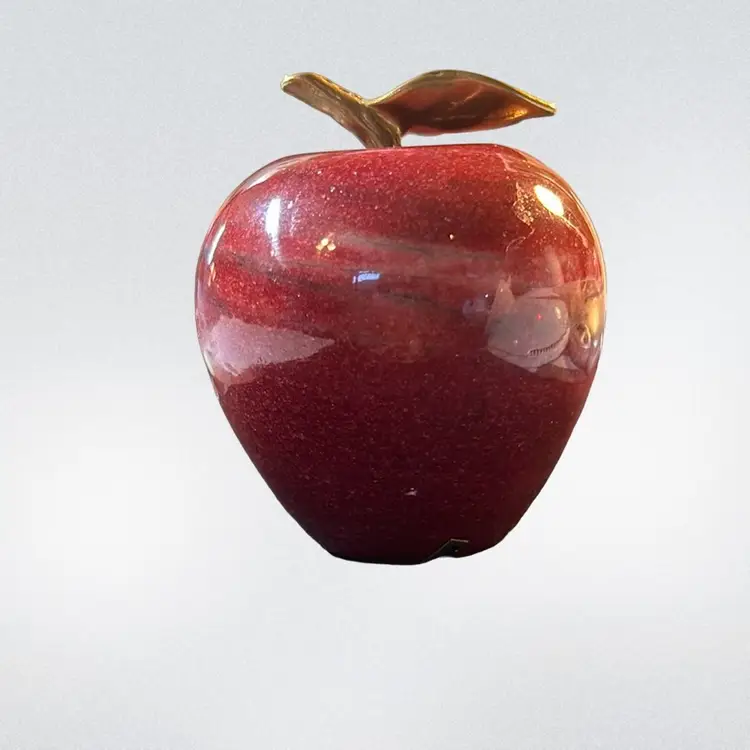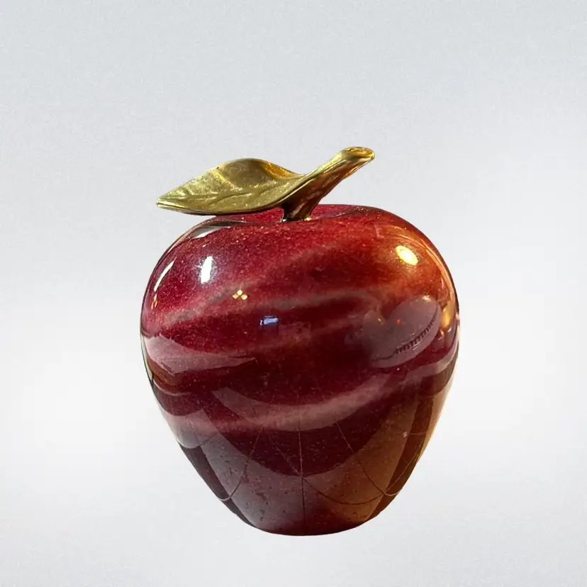 Just as this listing says above, this is a beautiful stone paperweight highly polished. It stands 3 1/2 inches tall the leaf on it is brass.