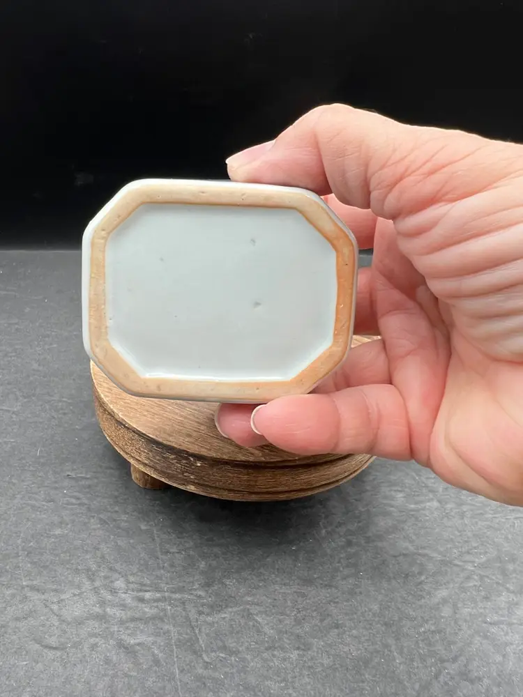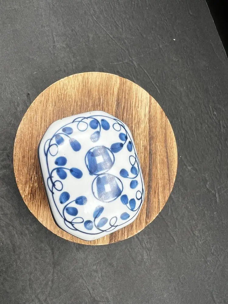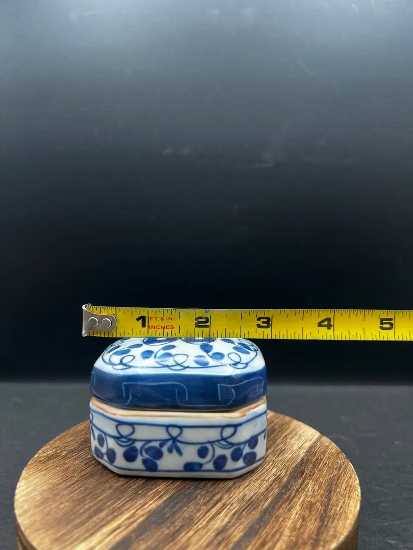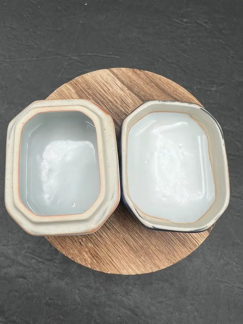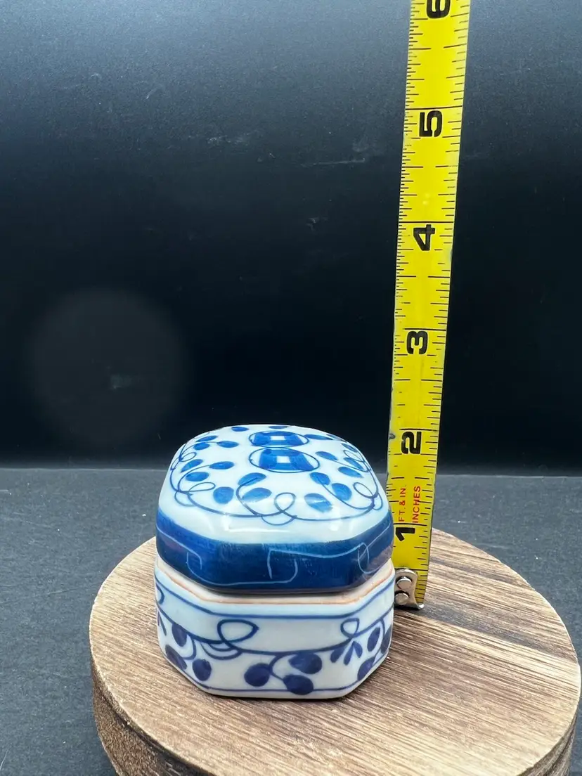 Vintage Pottery Octagonal Shape Lidded Trinket Box. Blue & White. In good condition, no chips or cracks 1 3/4” tall x 2” x 3”